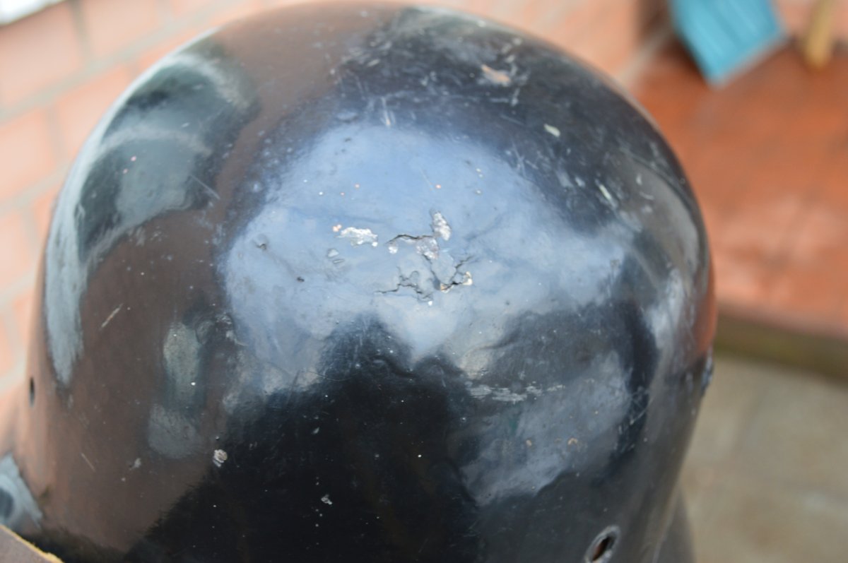 В этой каске кто то на мацаклете катался. Вальц сточен. Или может это Кетай? перекрашенный битумным лаком. На что она такая подойдет?
