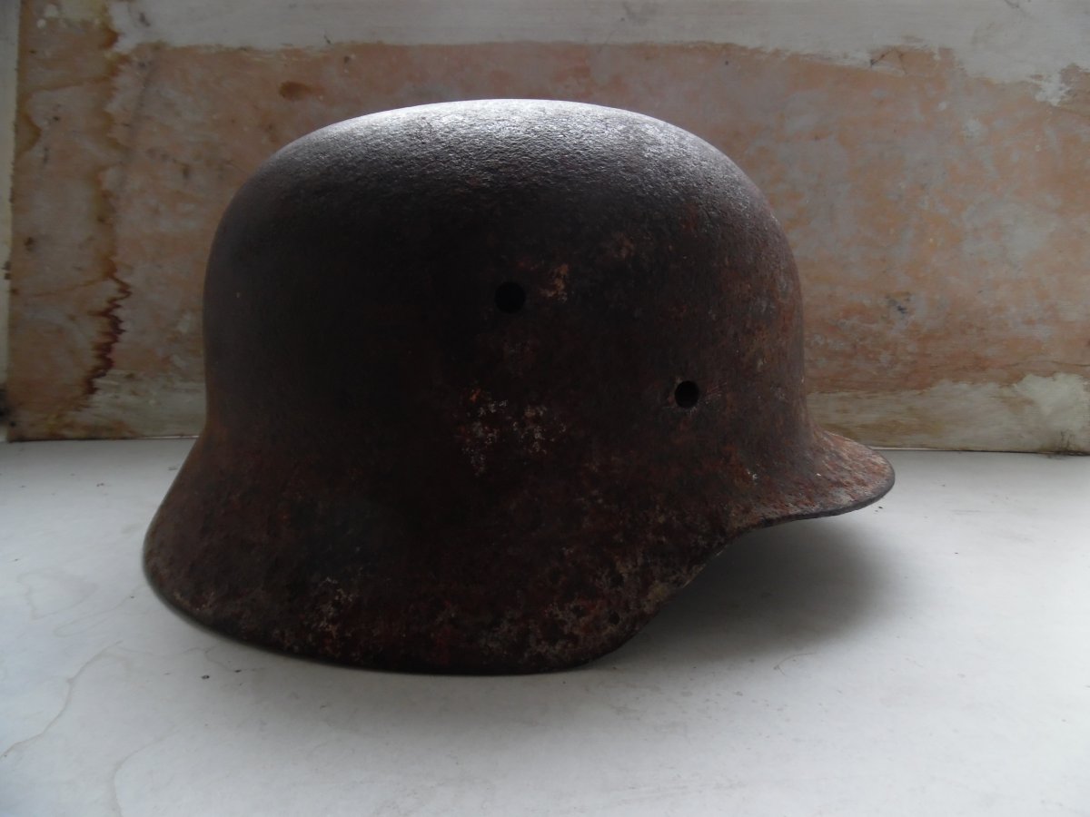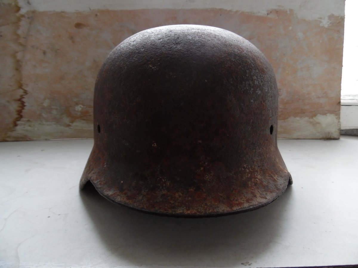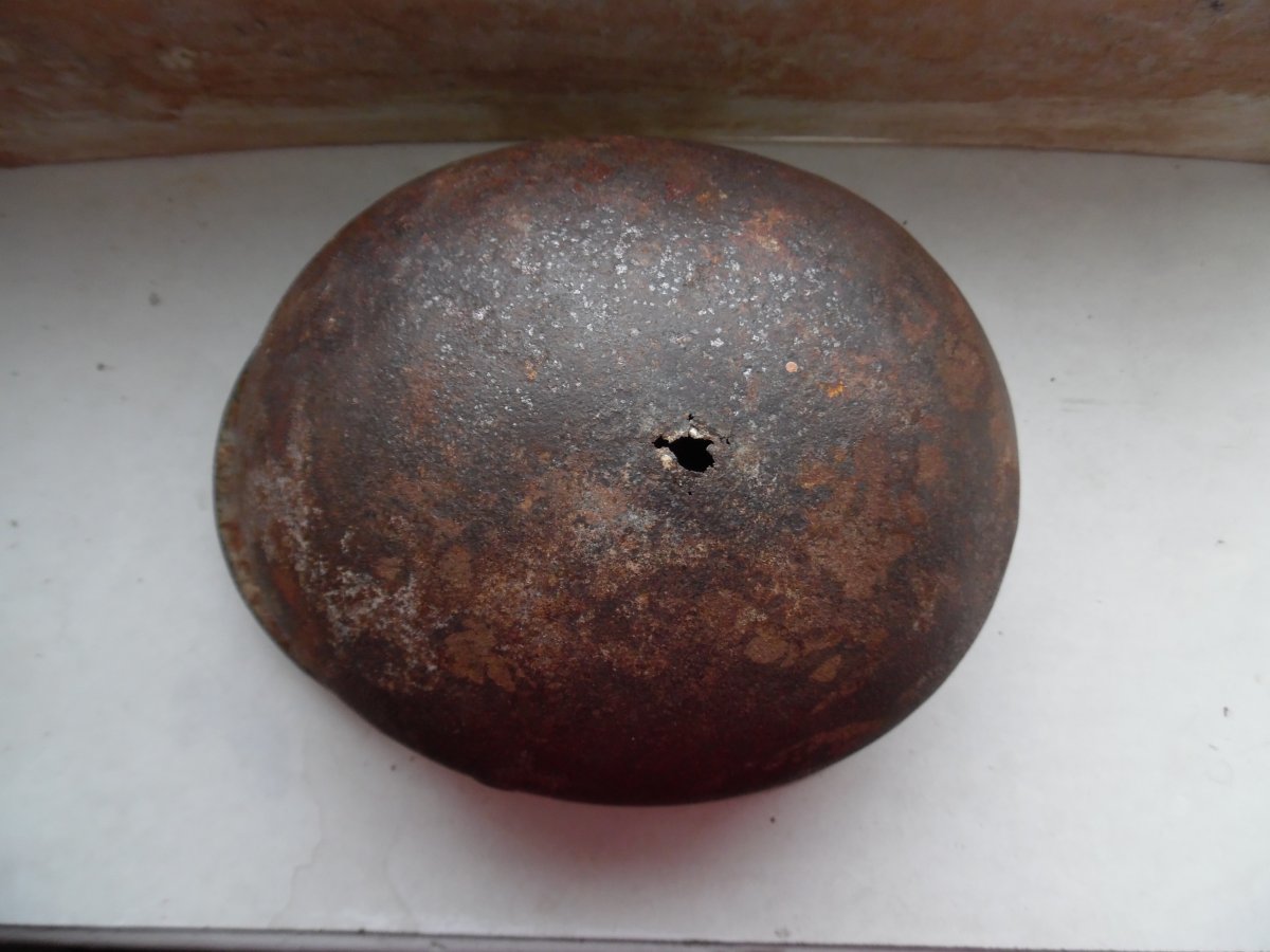 Продам каску М40/65см. Состояние на фото метал крепкий есть одна дира и немножка отсутствует вальц на фото видно. Цена 350 грн.
