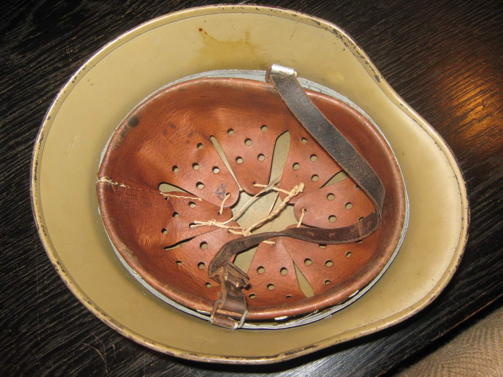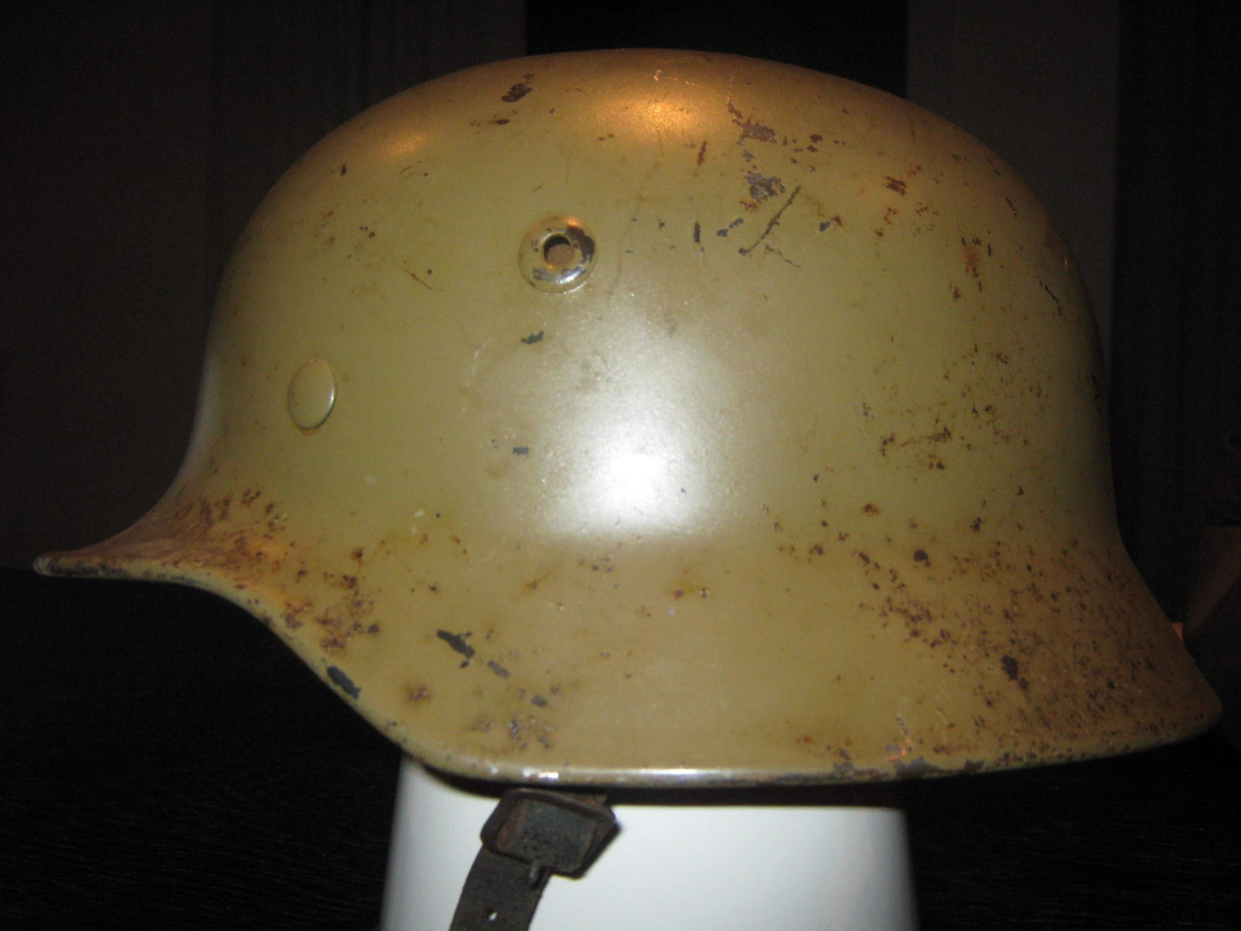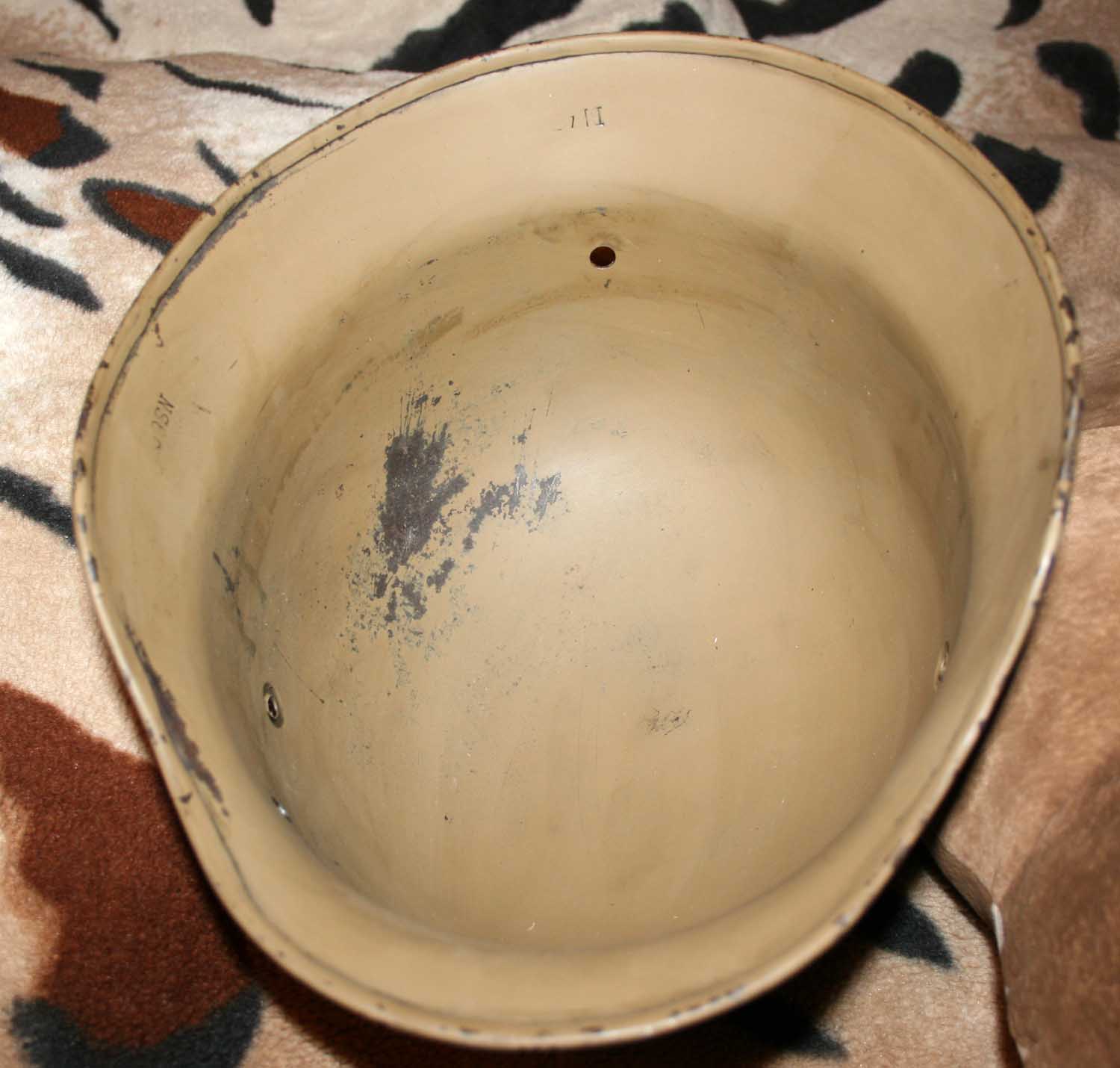 Отмыл шлем полностью. Могу сказать, что подшлемник там когда то стоял. Под песчаной окраской нет никакой другой, голый металл, даже возле вальца. Это если вариант с перекрасом чехами для Египта, то зачем было так заморачиватся с отмыванием родной краски, причем так тщательно? Это же немаленькие трудозатраты?