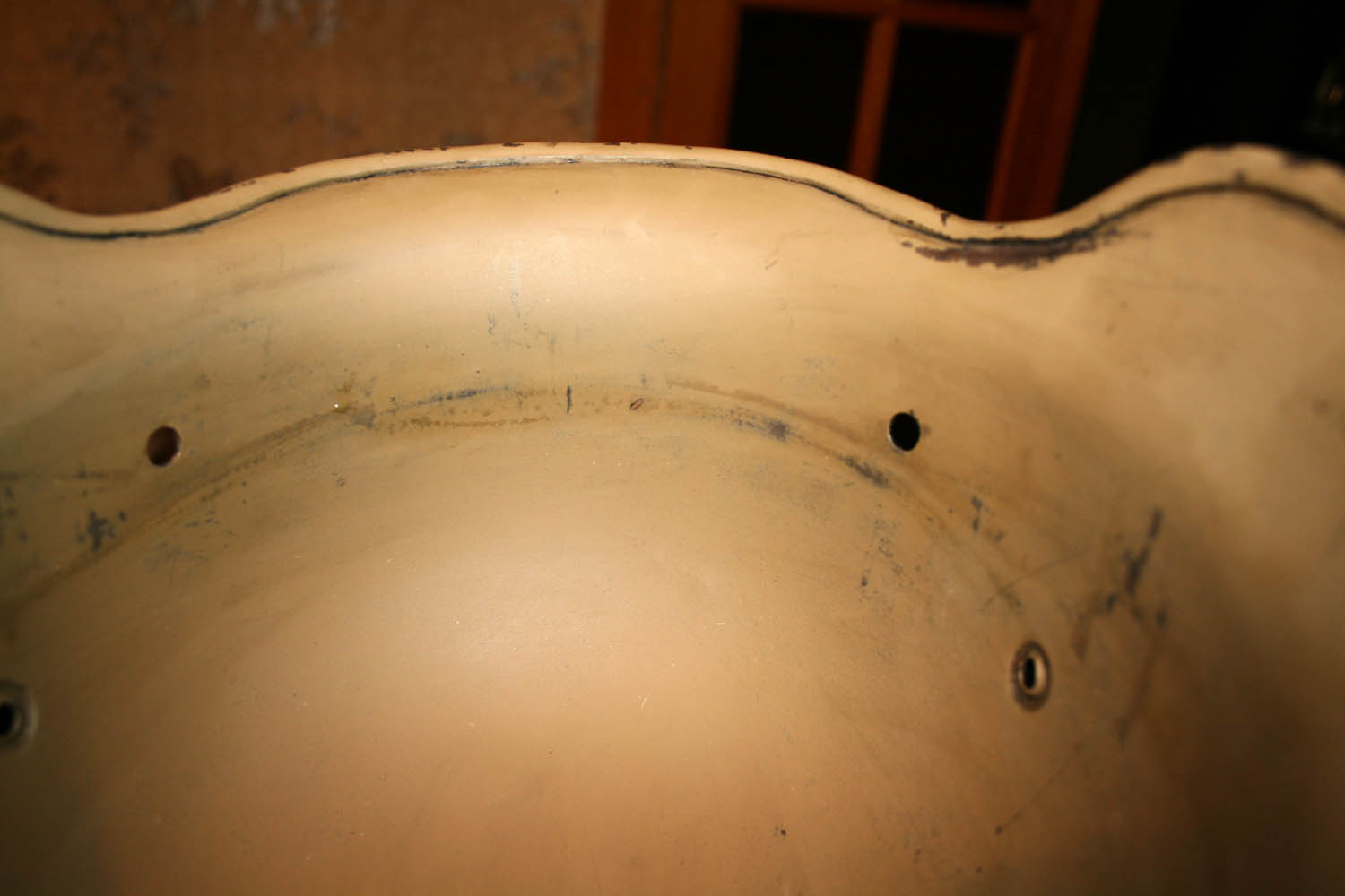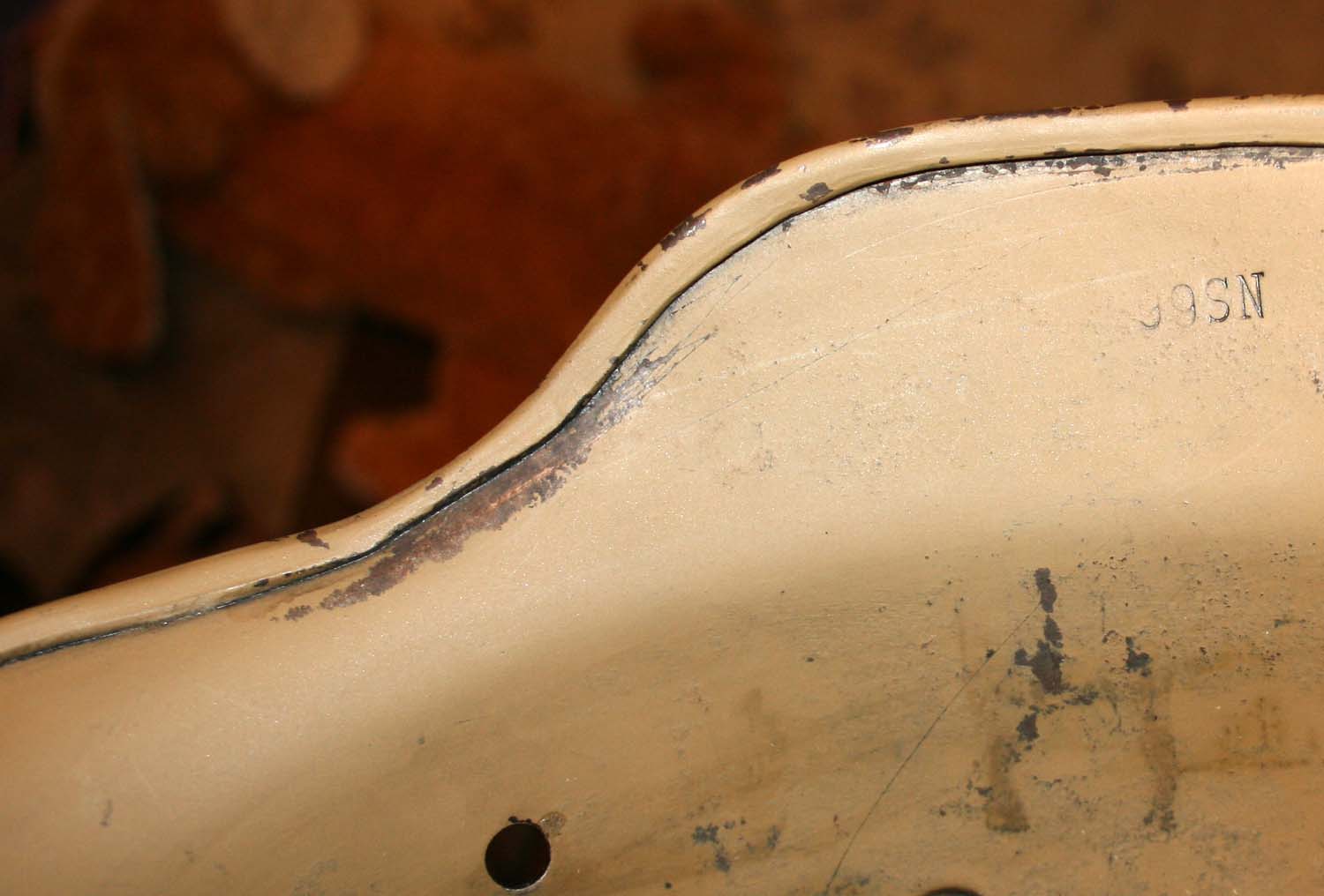 Я сам сейчас рою где могу, но вот буржуи подкинули только эти две версии. В любом случае краска реально старая, и как видно, подшлем стоял. Пока нет 100% свидетельств красились ли шлемы для южных областей в песочный окрас на заводах, впрочем нет и обратных сведений. Так что 50\50, и это лучше чем просто сейчас его перекрасить. ЗЫ. Посмотрел другую южную снарягу, таки красилась она фабрично и полностью, с чего вдруг тогда каски не красить?