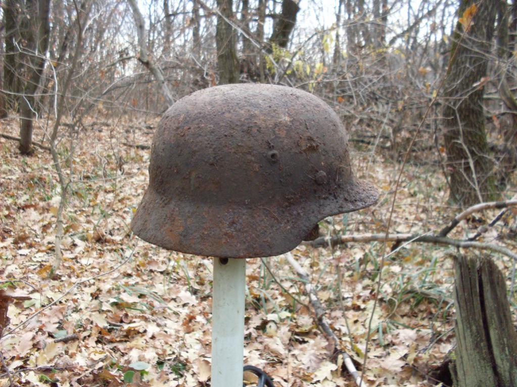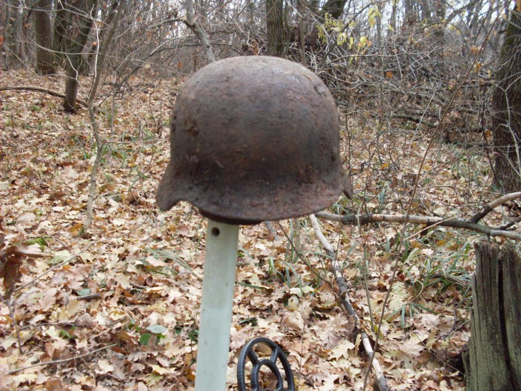Каска була найдена за допомогою МД біля старої хати (вже руйнується) присипана глиною і різним сміттям майже на поверхні (скільки пролежала там незнаю ну точно не з 44 можливо її до цого використовували в господарсві а можливо валялась на горищі ) В Корсуні був 3 8-11 березня. Ходив в сосновий лісок найшов пару гільз (земля була мерзла майже асфальт) На полях не копав було 8-10 см снігу + мерзга земля