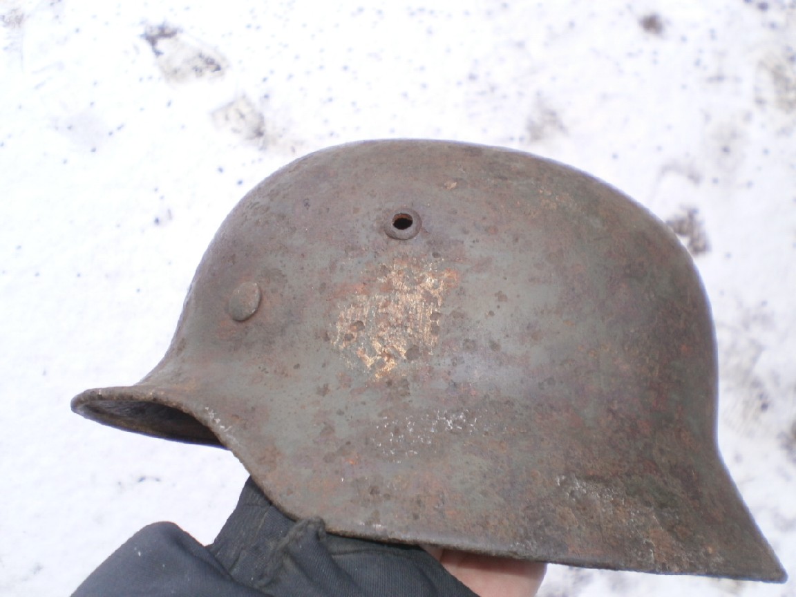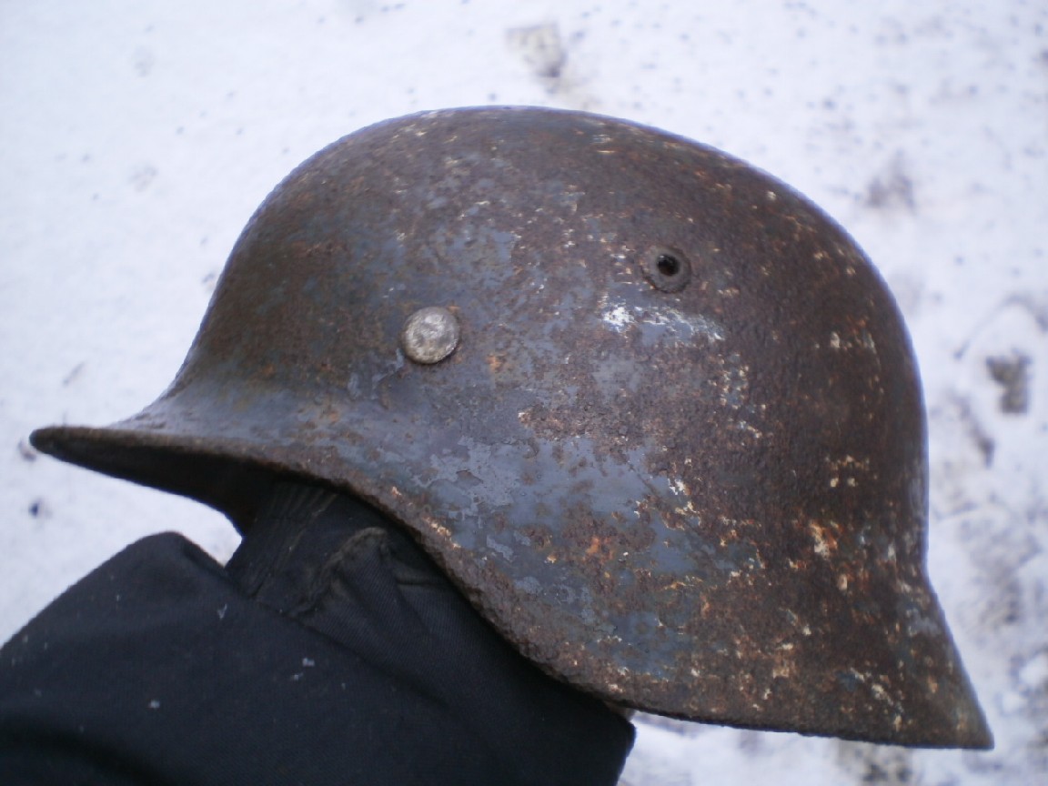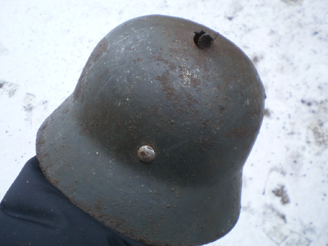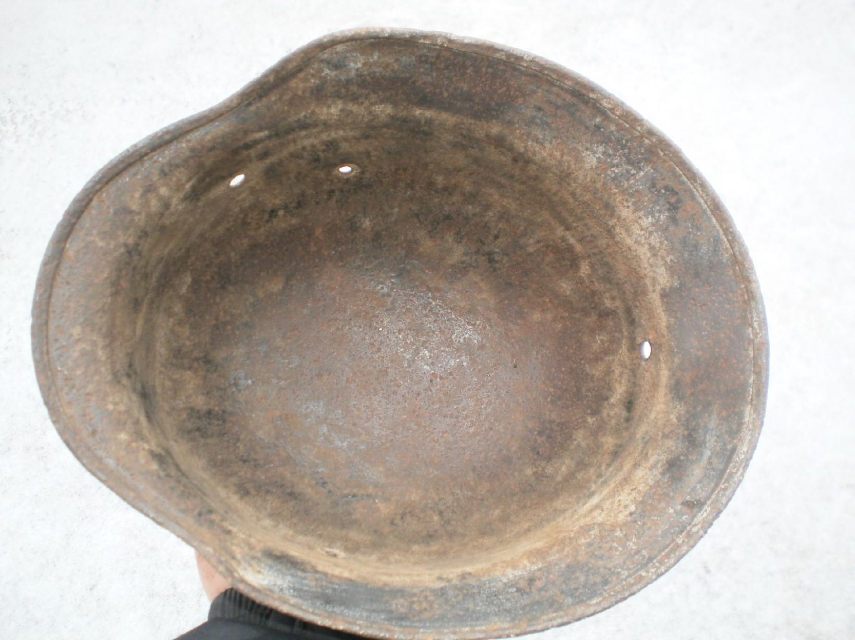 №22 ПРОДАНО М-35,все на фото, двойной перекрас,триколор,крепкая,битая осколком, маленький свищ на козырьке, кожа,600гр.