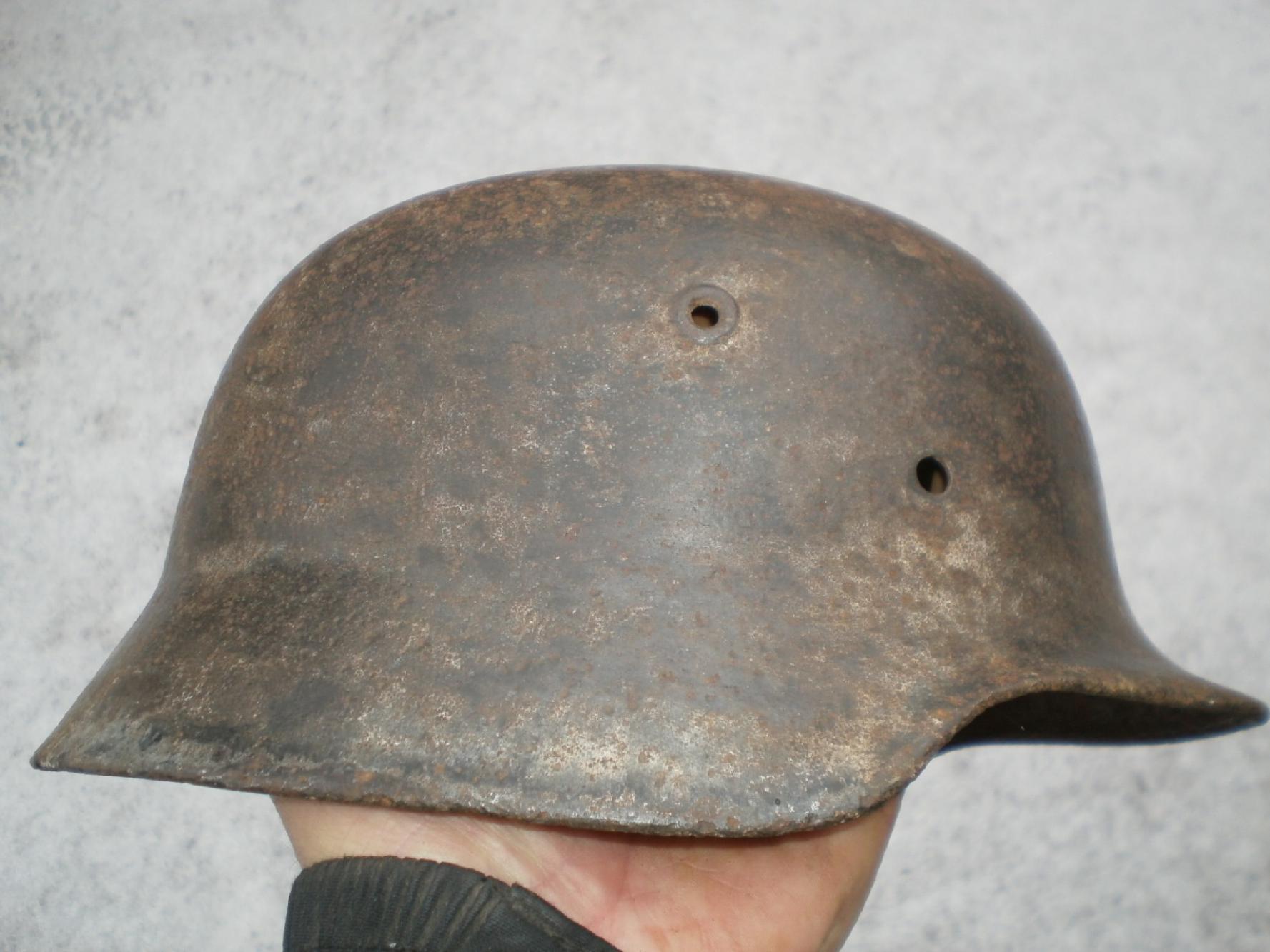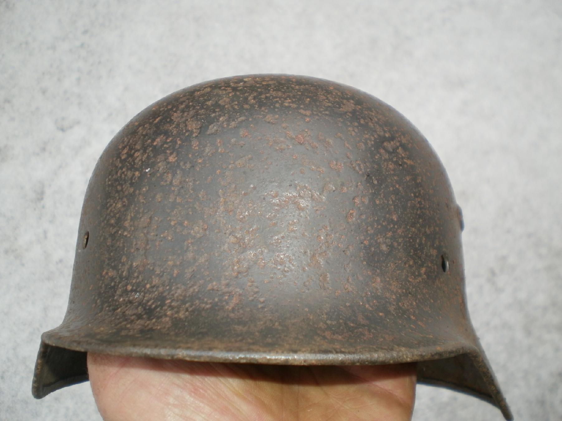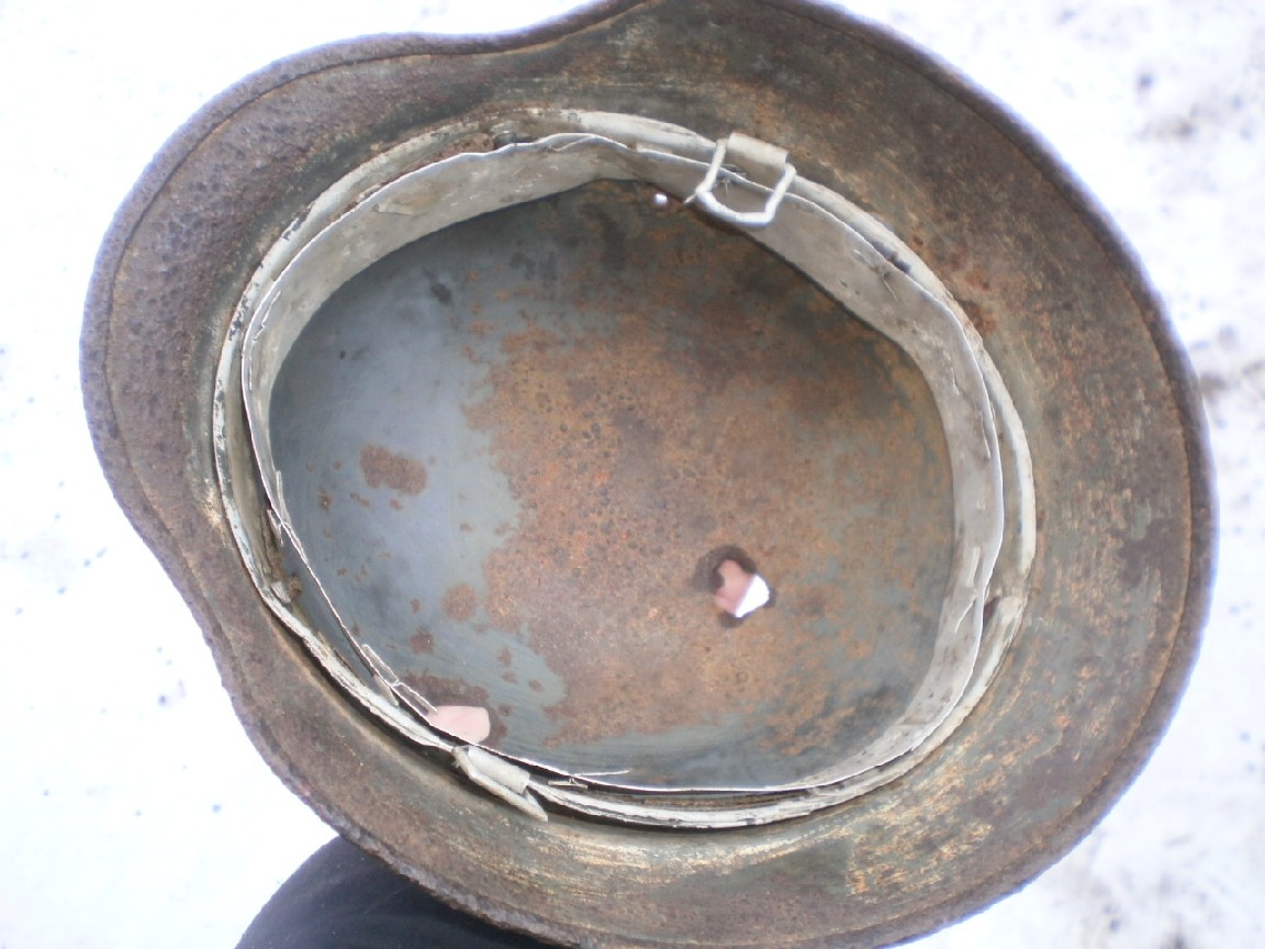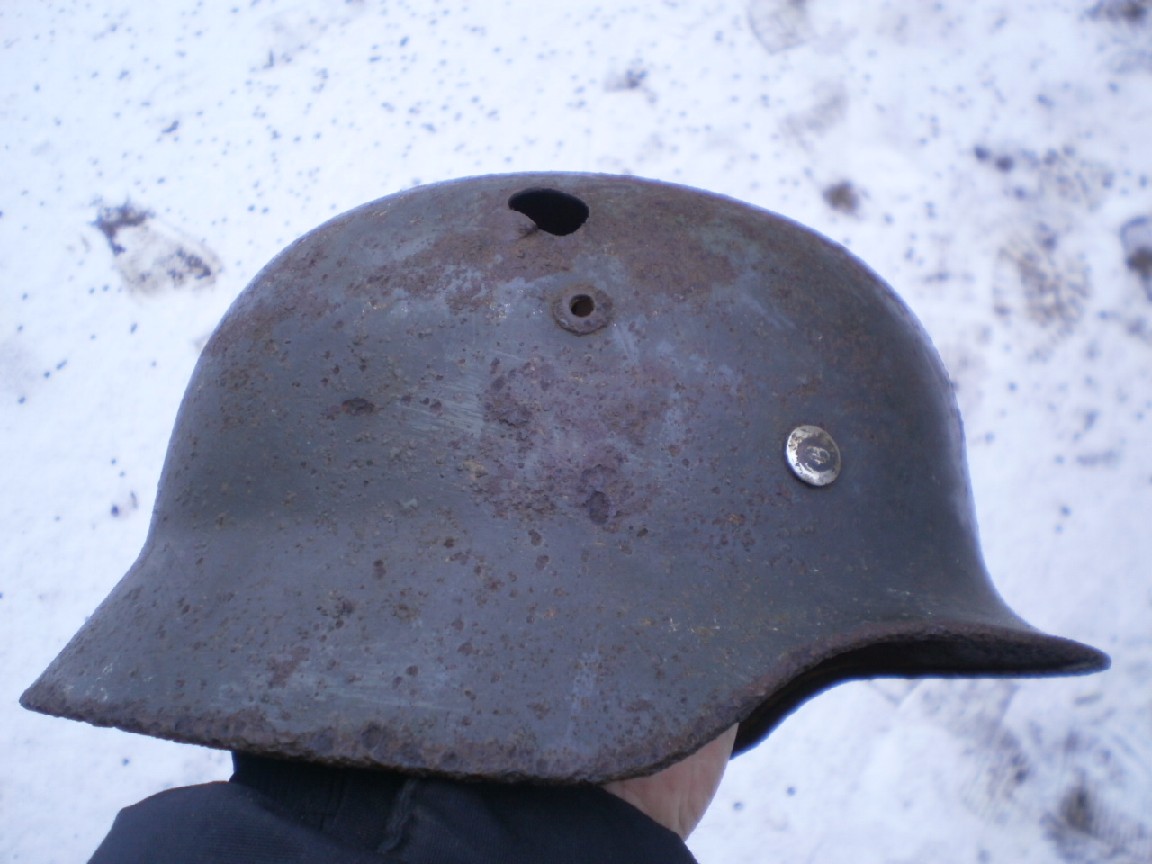 №22 ПРОДАНО М-35,все на фото, двойной перекрас,триколор,крепкая,битая осколком, маленький свищ на козырьке, кожа,600гр.