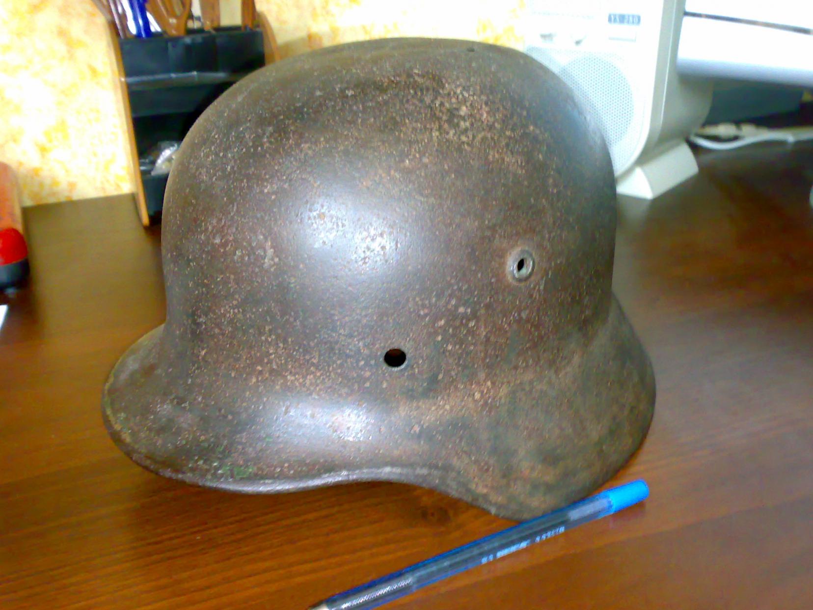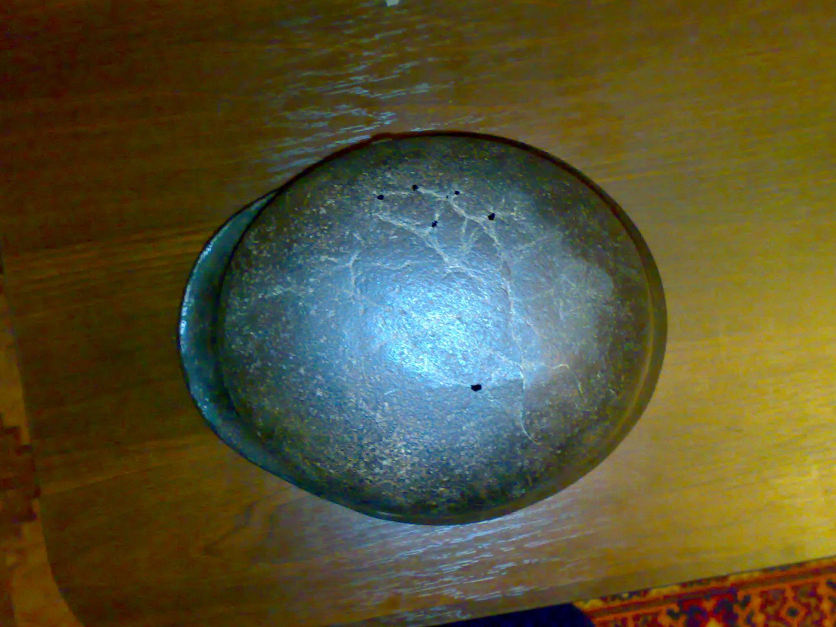 М35 вот такая, по кламерам внешним 60см с натяжкой, выходит 58-й-59-й размер не разу таких не попадалось.Метал дубовый. Валец, люверсы супер!Только на куполе проблемы, свищи и трещинка легко устранимы.Но считаю из-за размера вообще ее трогать не стоит.Кто встречал такие и что сей раритет стоить может, на данный момент?