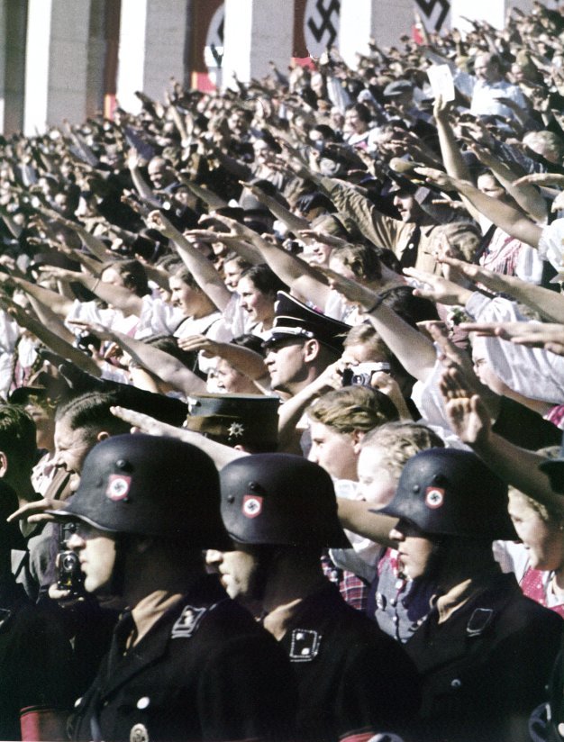 ну и на посошок - ещё парочка фоток ранних Альгемайне - в точ. таких М17 цветная, на параде - первый слева,оберштурмфюрер чёрно-белая, на плацу - унтер или оберофицер с портупеей.
