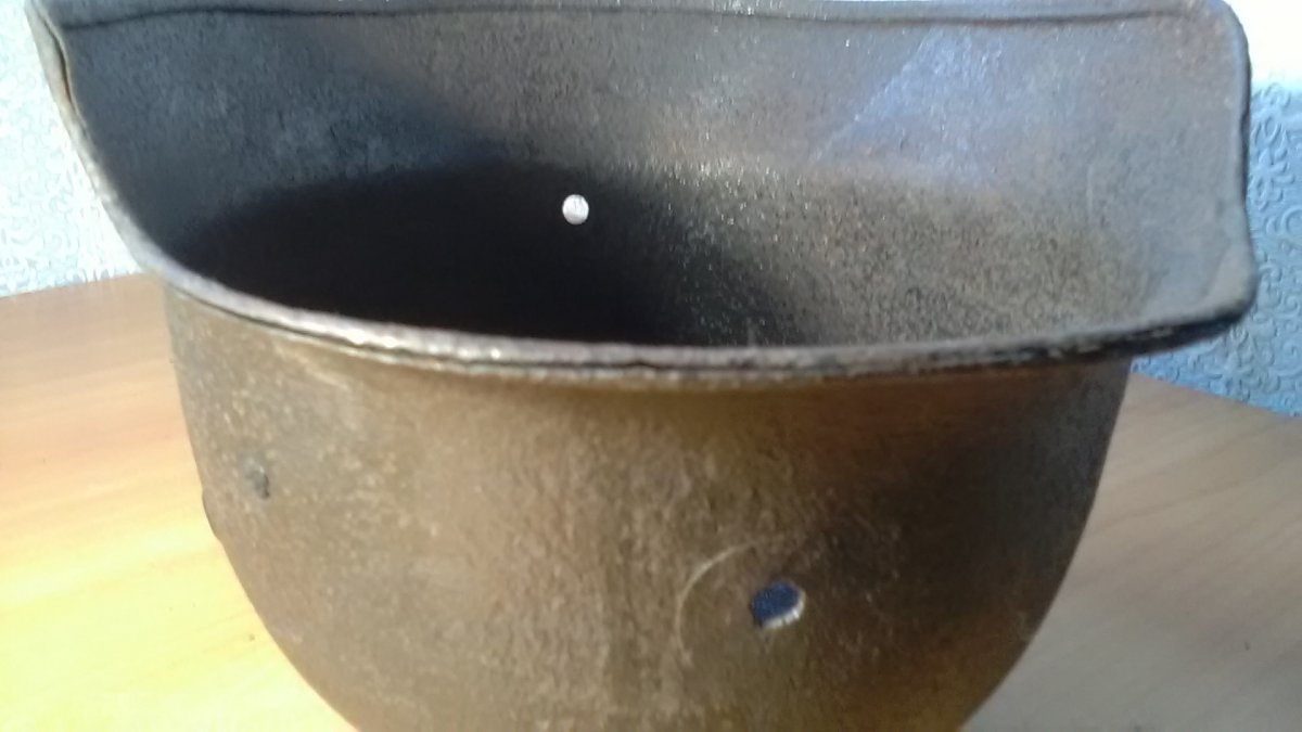 Каска ,по поему м-35 64размер,использовалась в качестве емкости для набора горячей смолы.Была обработана паяльной лампой и помыта.Стоит каких-то денег?