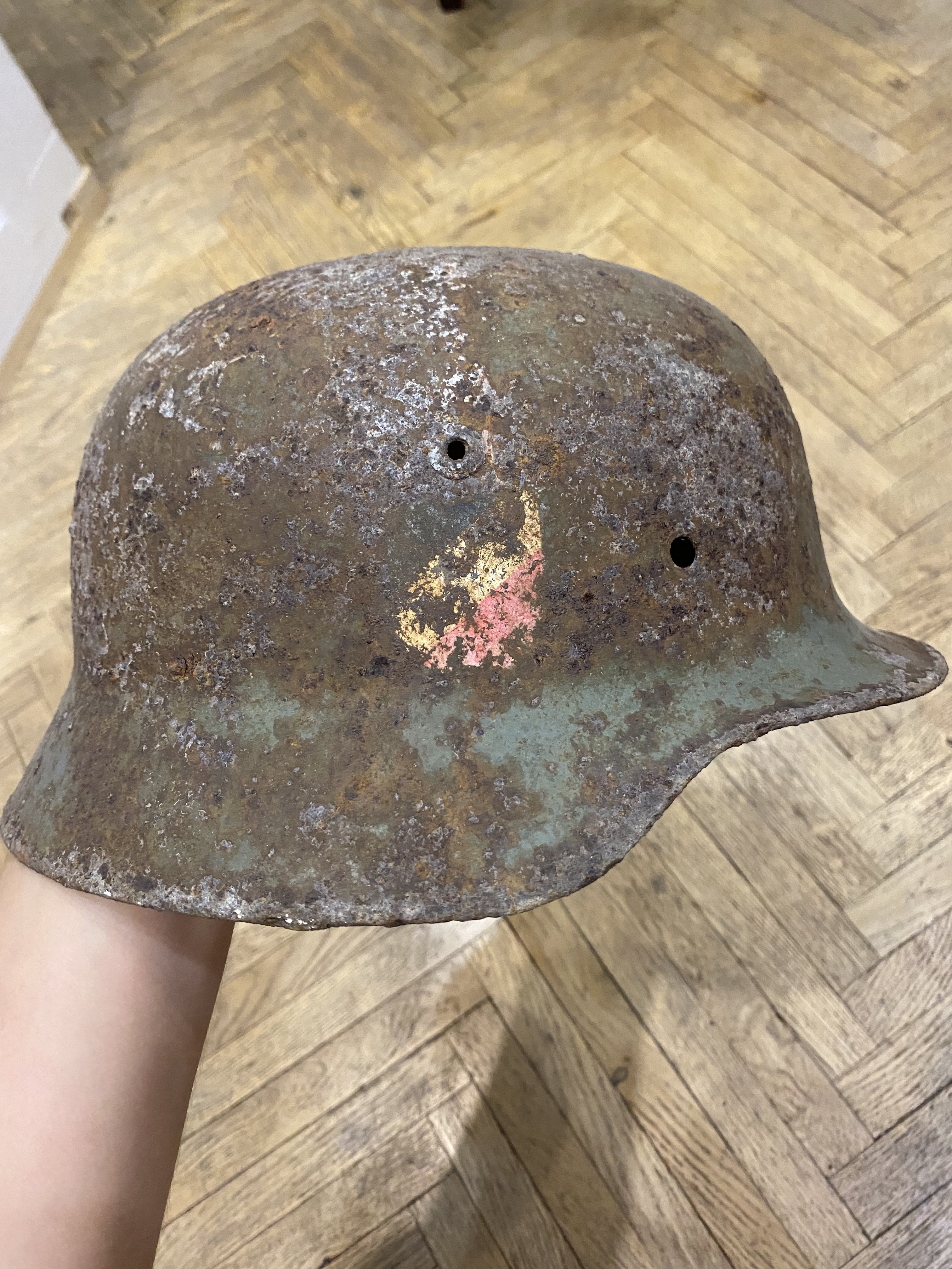 Кислоченый очень осторожно, полчаса в щавельке, сутками не купался, иначе бы вздулась пузырями краска. Цвет по-моему не изменился после чистки. А может я не так чувствителен к цветам… фото номера. Можно увидеть некопаный аналог?