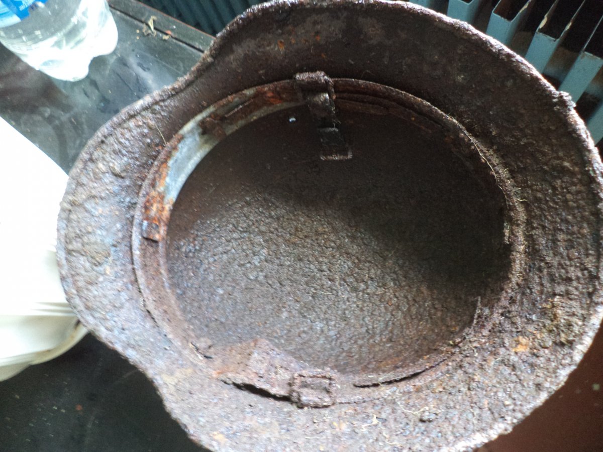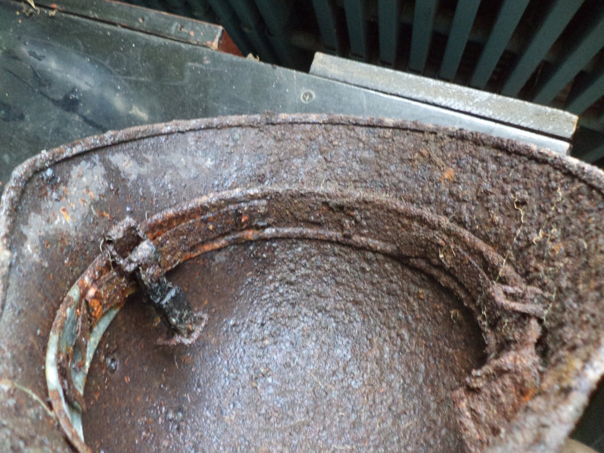 Подшлем могли выдрать, что бы одеть на пилотку, кепку и т.д. потом по весне обновили с того что было. Битого горшка. Который мог быть и М-40