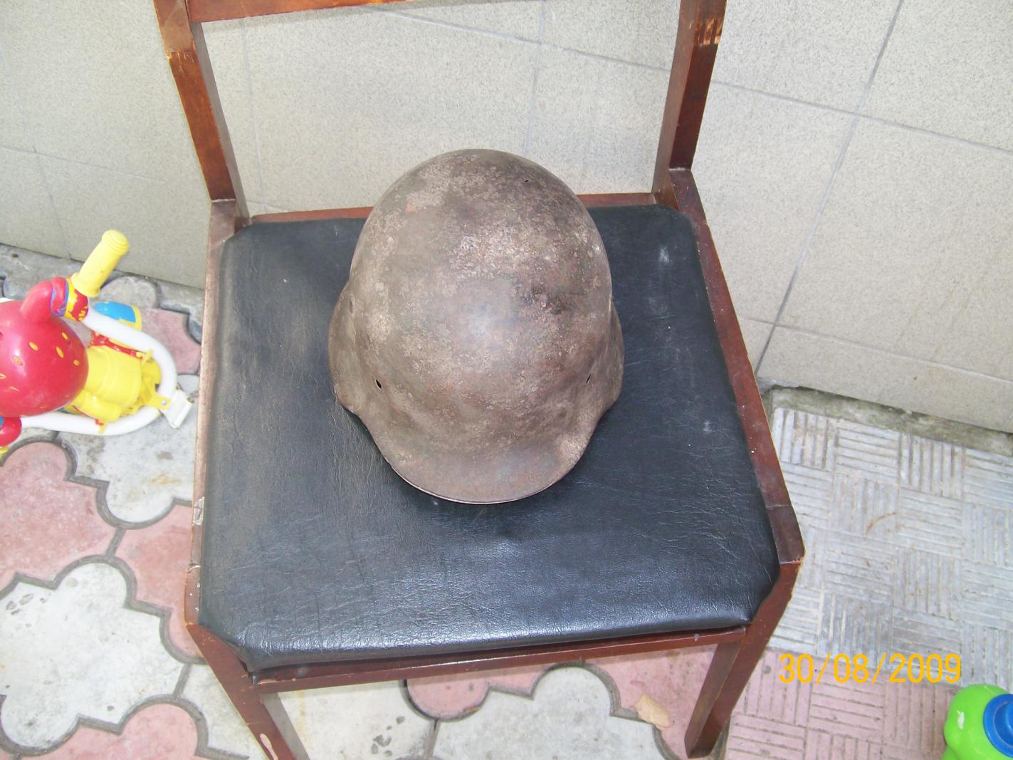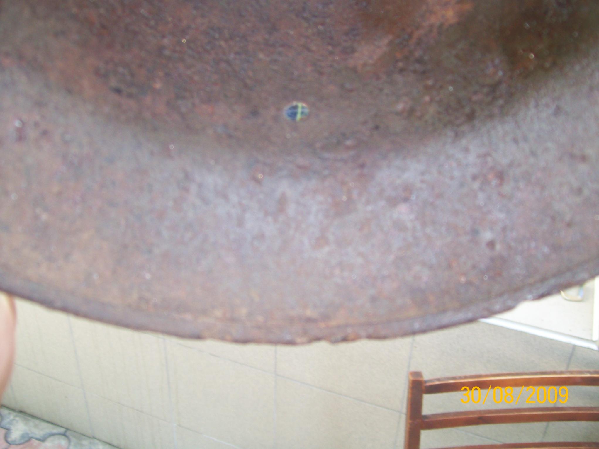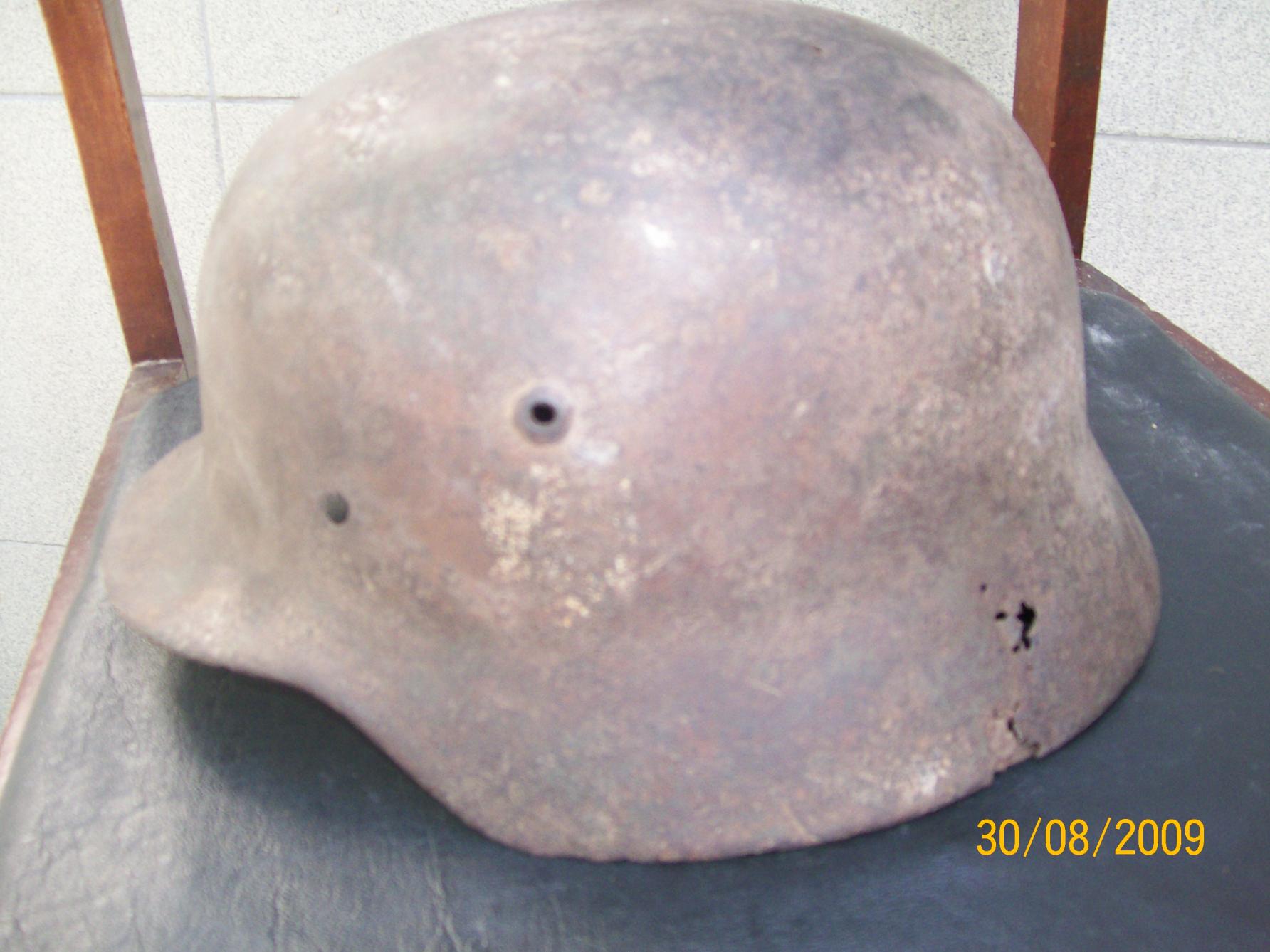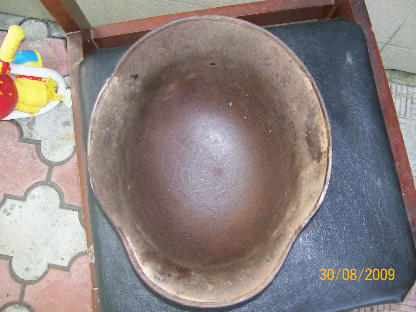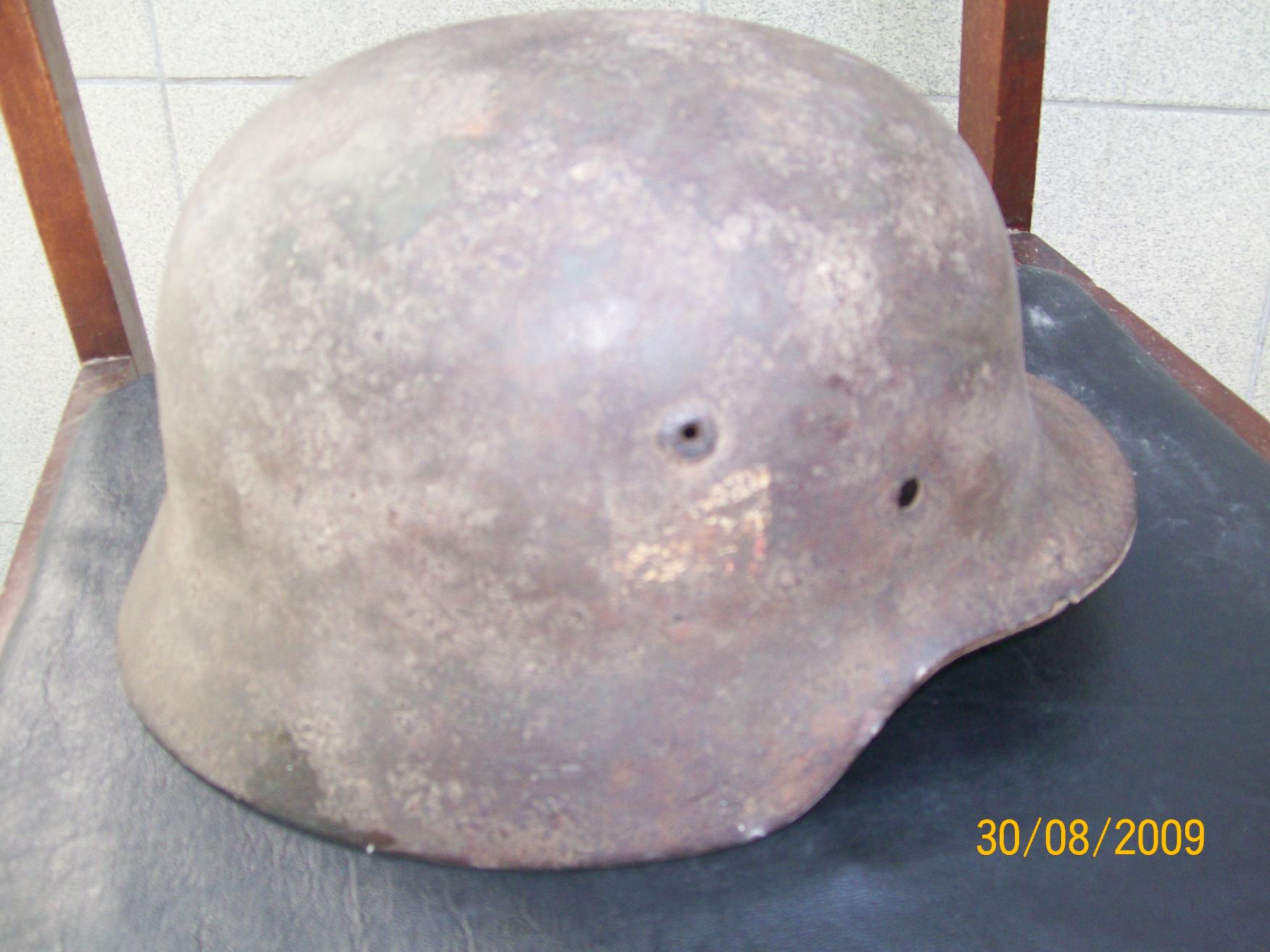 каска вроде м-42.свежекопана.остатки окраса и декалей. Несколько небольщих свищей. Хочу 450 гр, вроде 68 р-р, ещё не очистил
