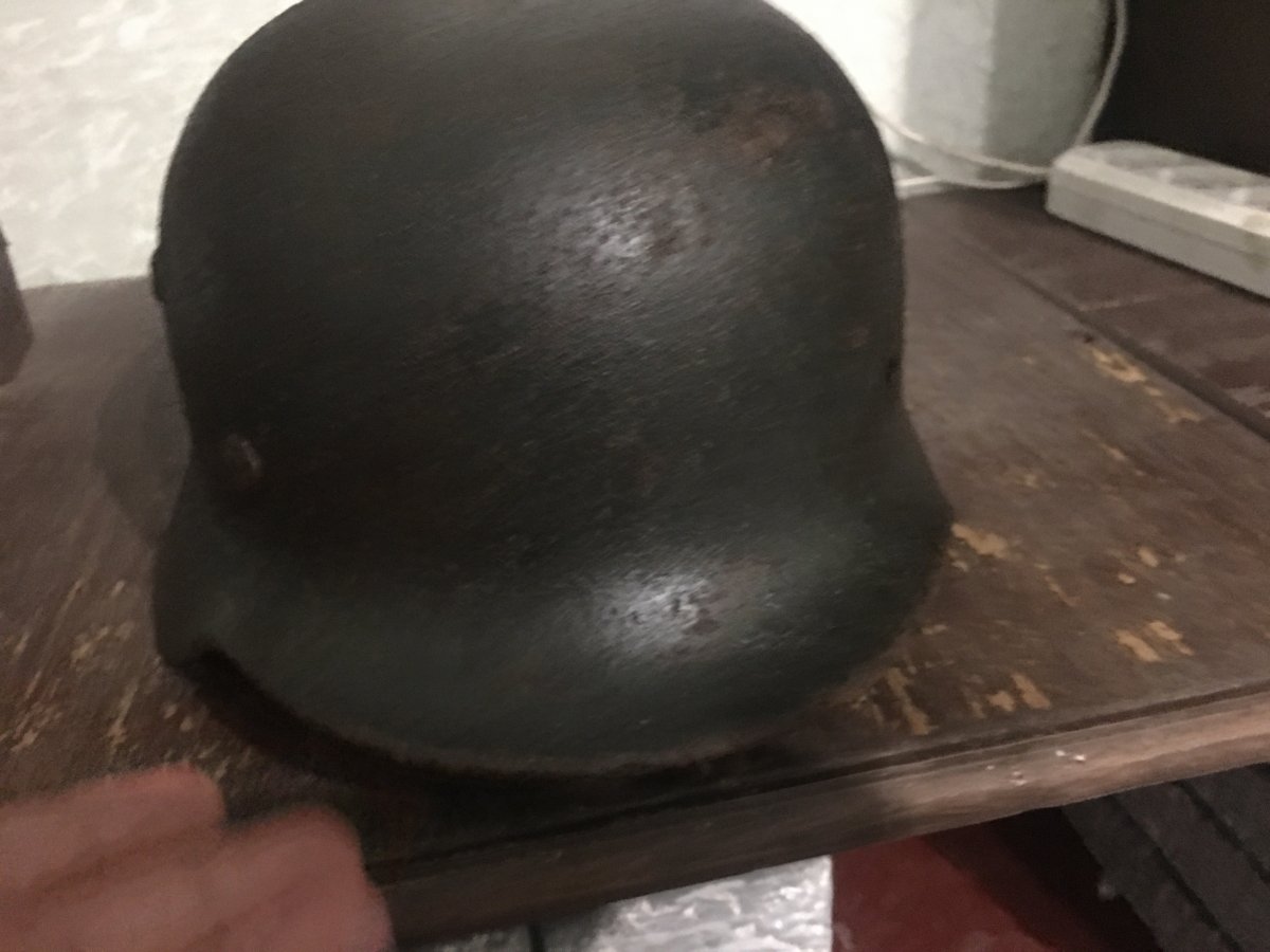 1. Каска М-35 отличный, огромный (70см по кламерам) шлем. Вальц целый, двр свищей нет. Много родной краски, очень красивый детализированный орёл. Родной обод подшлема. Просматривается клеймо ЕТ68, номер увы нечитаем. Законсервирована вд. Интересует конечная приблизительная цена.