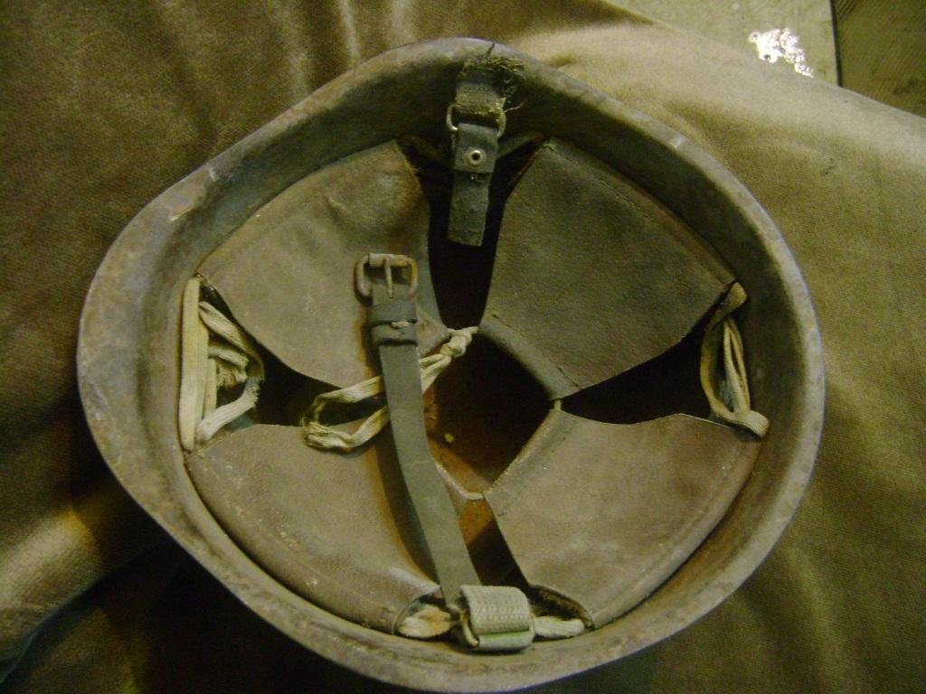 На советской каске вроде трещина на левом ухе? Если нет клейм с военным годом выпуска, то гривен 20-30. А по немецкой каске М42, возьмите портновский метр, померяйте по наружным кламмерам, от полученного результата отнимите 2 , вот и получится размер подшлемника.