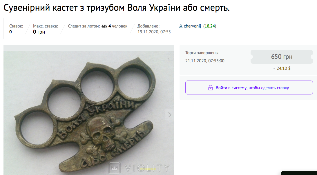Вітаю. Колега показав латунний кастет, каже копнув. МАло вірю. Підкажіть хто розбирається. З пов. Інших фото нема.