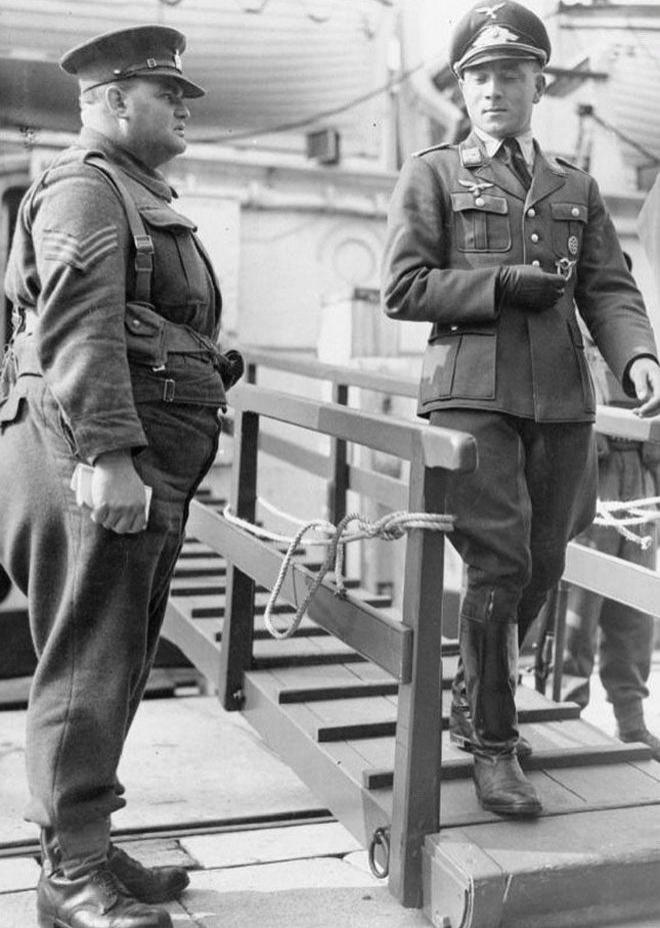 «Это Мёлленброк, но Билл Норман (который знал его лично) утверждает, что фотография была сделана во время репатриации в Гётеборге в 1943 году. Лично я считаю, что Норман прав». ... поэтому мы снова проверили и согласились, что в коллекции IWM указано, что это фото было сделано в Ньюхейвене в 1941 году, но на другом фото из этого набора он изображен в шинели и на другом трапе, также другим фотографом. (с) Источник: группа Facebook Colourised Photos времен Второй мировой войны.