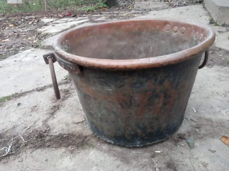 Добрый день! Это поможет? Ну, точно такого-же не находится, есть разные по объему, но схожие по конструкции... https://images.ua.prom.st/2044114972_w640_h640_mednyj-kazan-kashpo.jpg И вот еще чан/котел/казан 100-120 литров 17-18 век медный: https://ireland.apollo.olxcdn.com/v1/files/uw4i7d7wgaho-UA/image;s=1000x700 И по истории предмета малость: http://www.prostir.museum/ua/post/27781 С уважением!