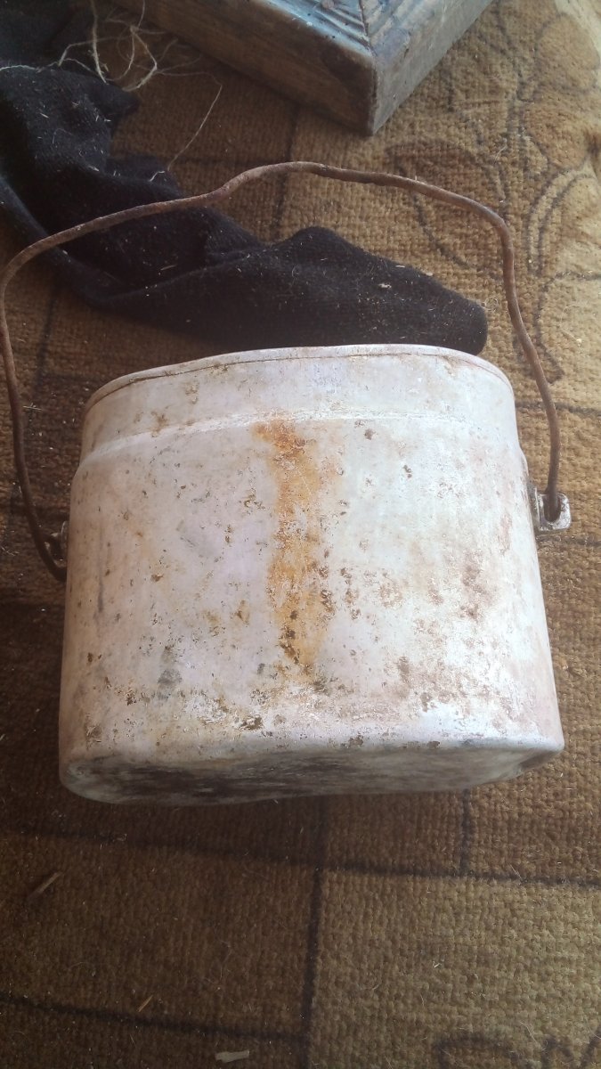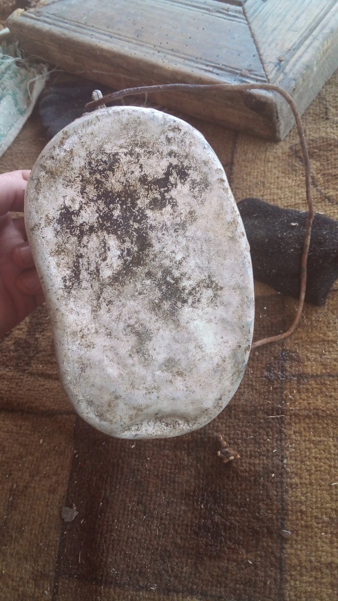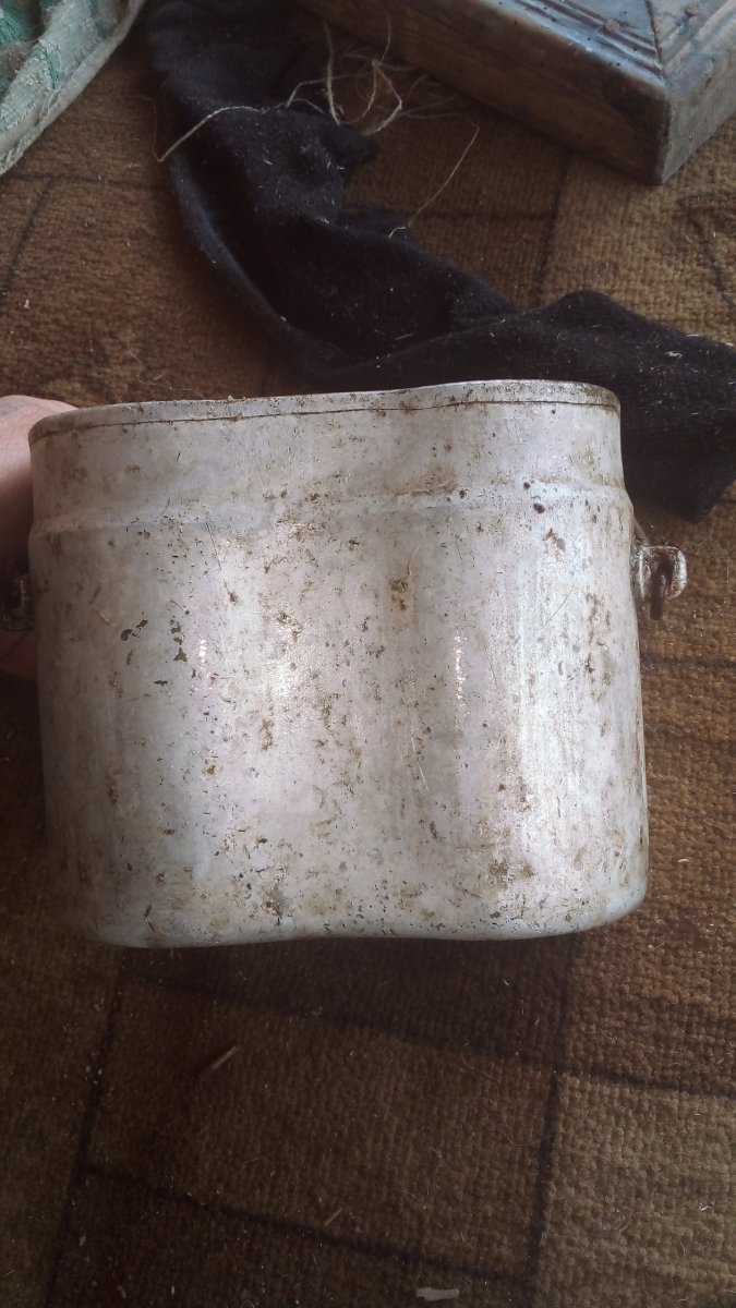 Доброго шановний! С такими ушками шли послевоенные "экземпляры". Обычно они окрашивались в оливковый цвет, по годам не угадать, начиная с конца-40 вплоть до развала, год и завод выбивались на ручке крышки.