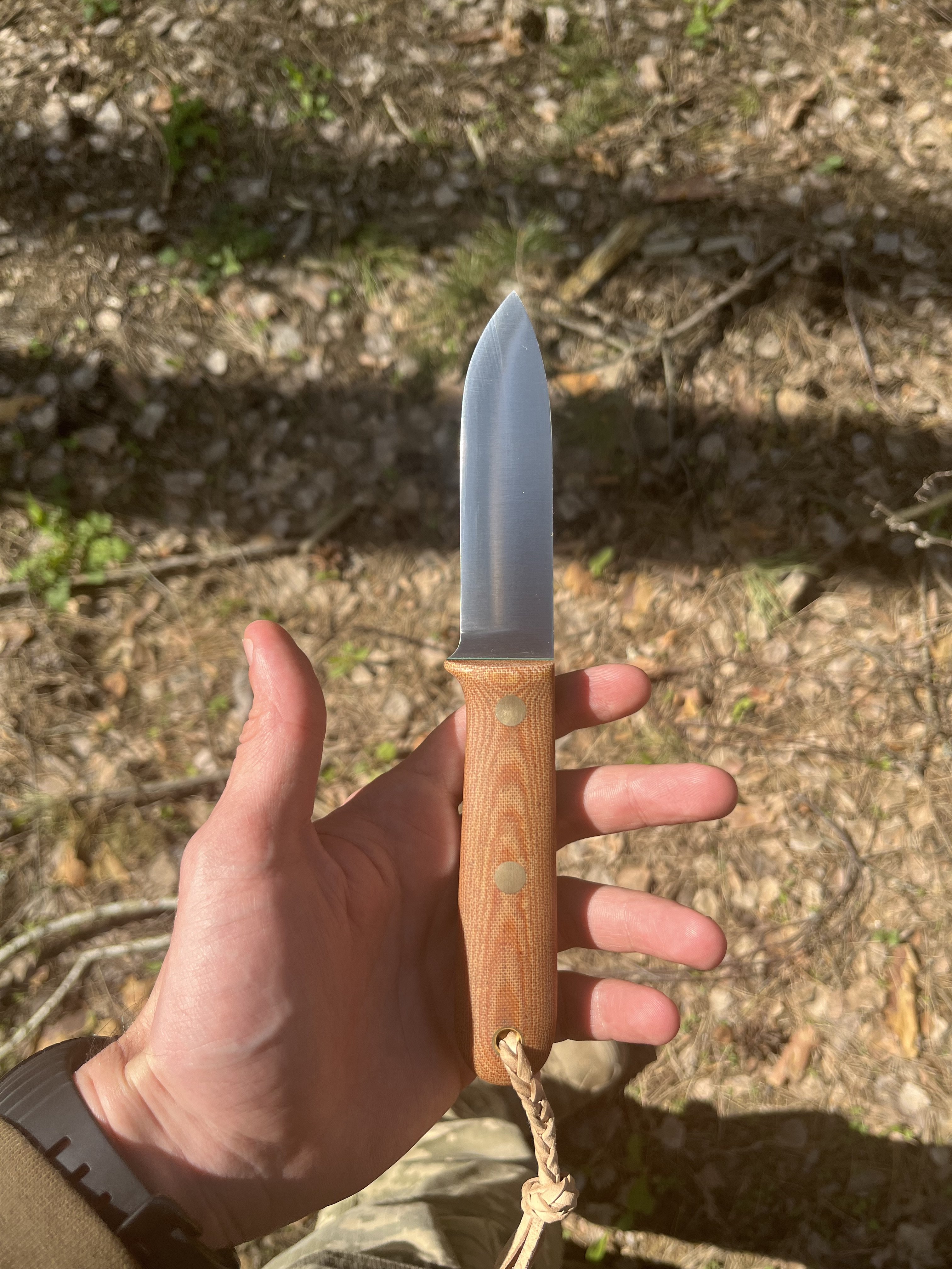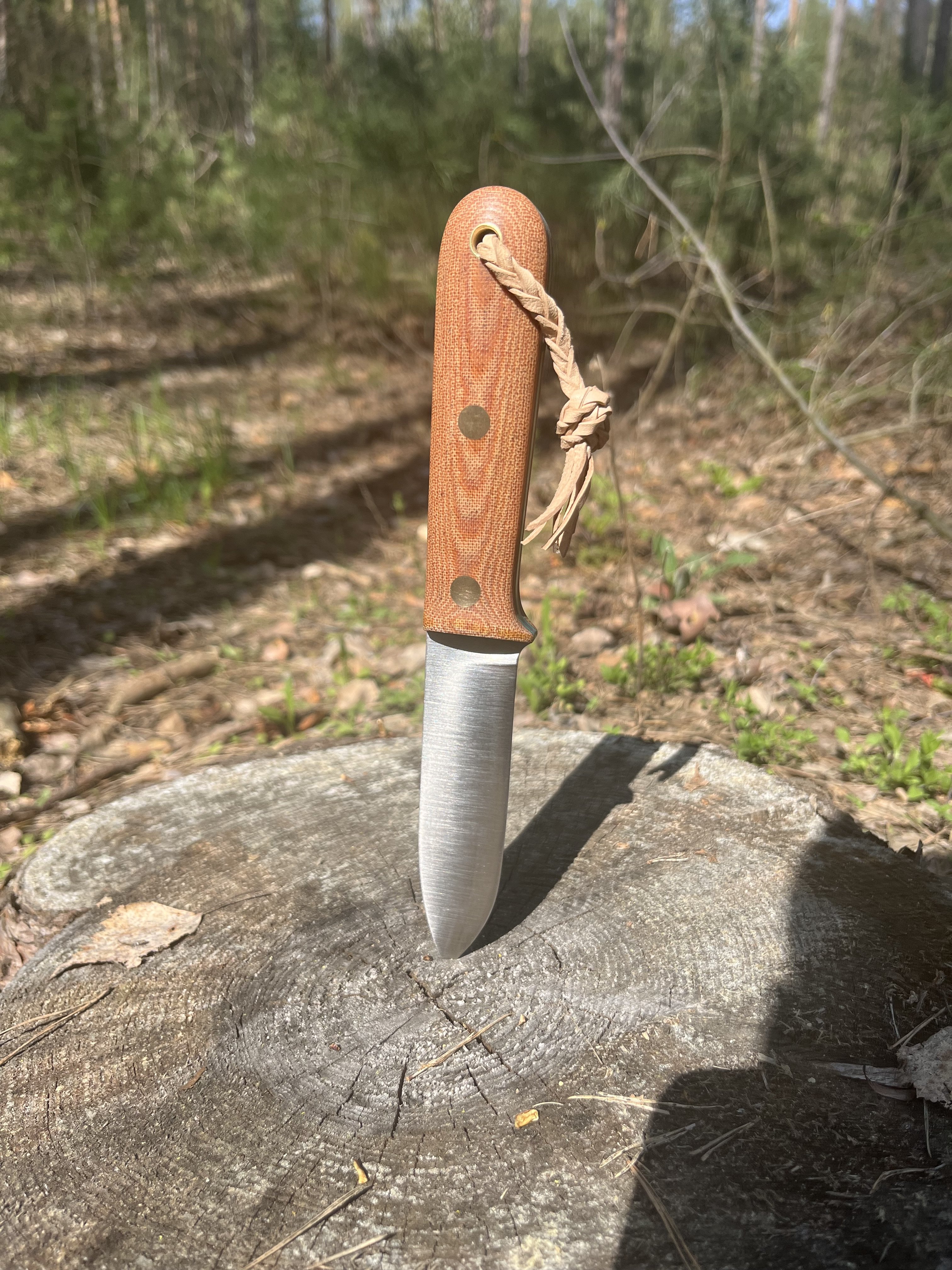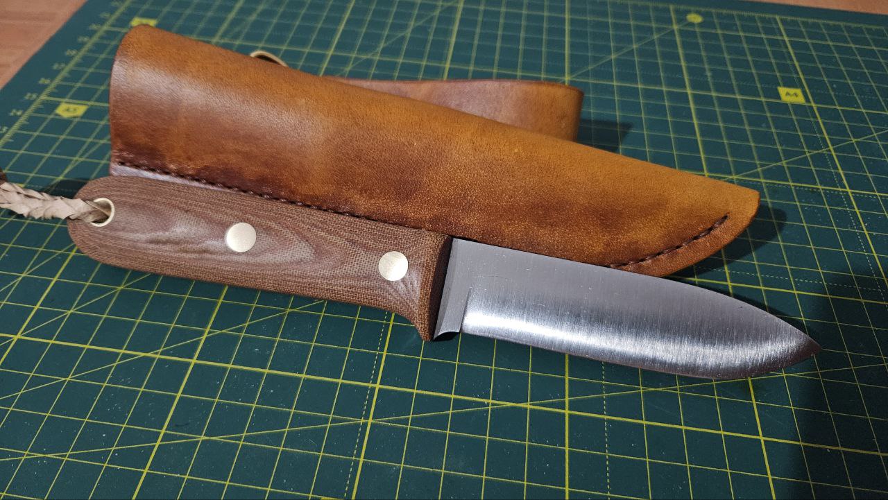 Вiтаю всix. Запропоную такий нiж, за авторством @anton_nutty ТТХ: Клинок - 100х26х2,5мм сталь ELMAX 61HRc спуски конвекс Руків'я - 110мм, мікарта, фібра, штифти і трубка Пiхви шкіра РД 3,6 і 2,5мм, жирована Стан - майже новий, рiзав пару овочiв та м’ясо. Ціна - 4300 грн. Торг