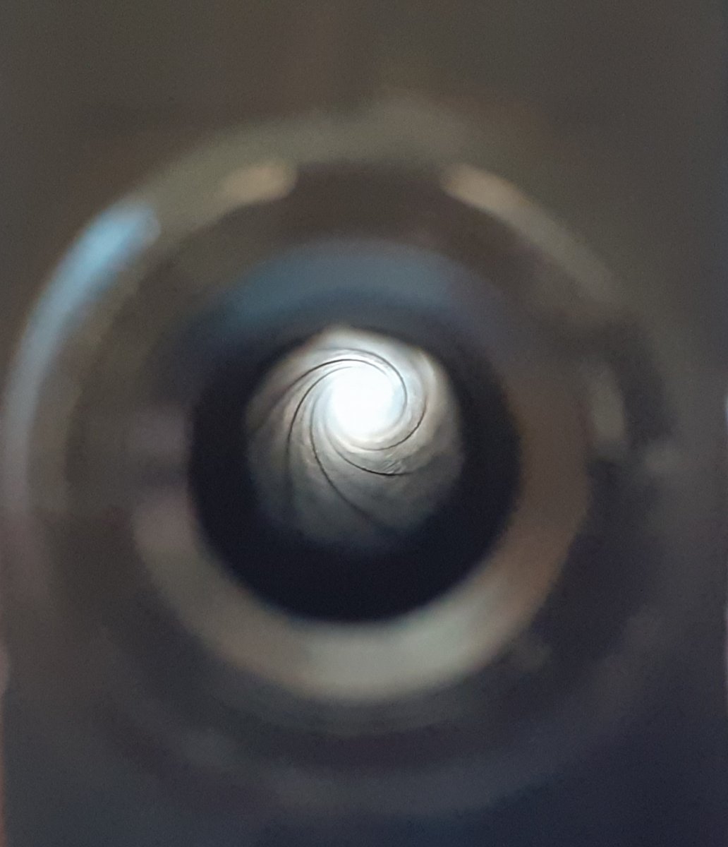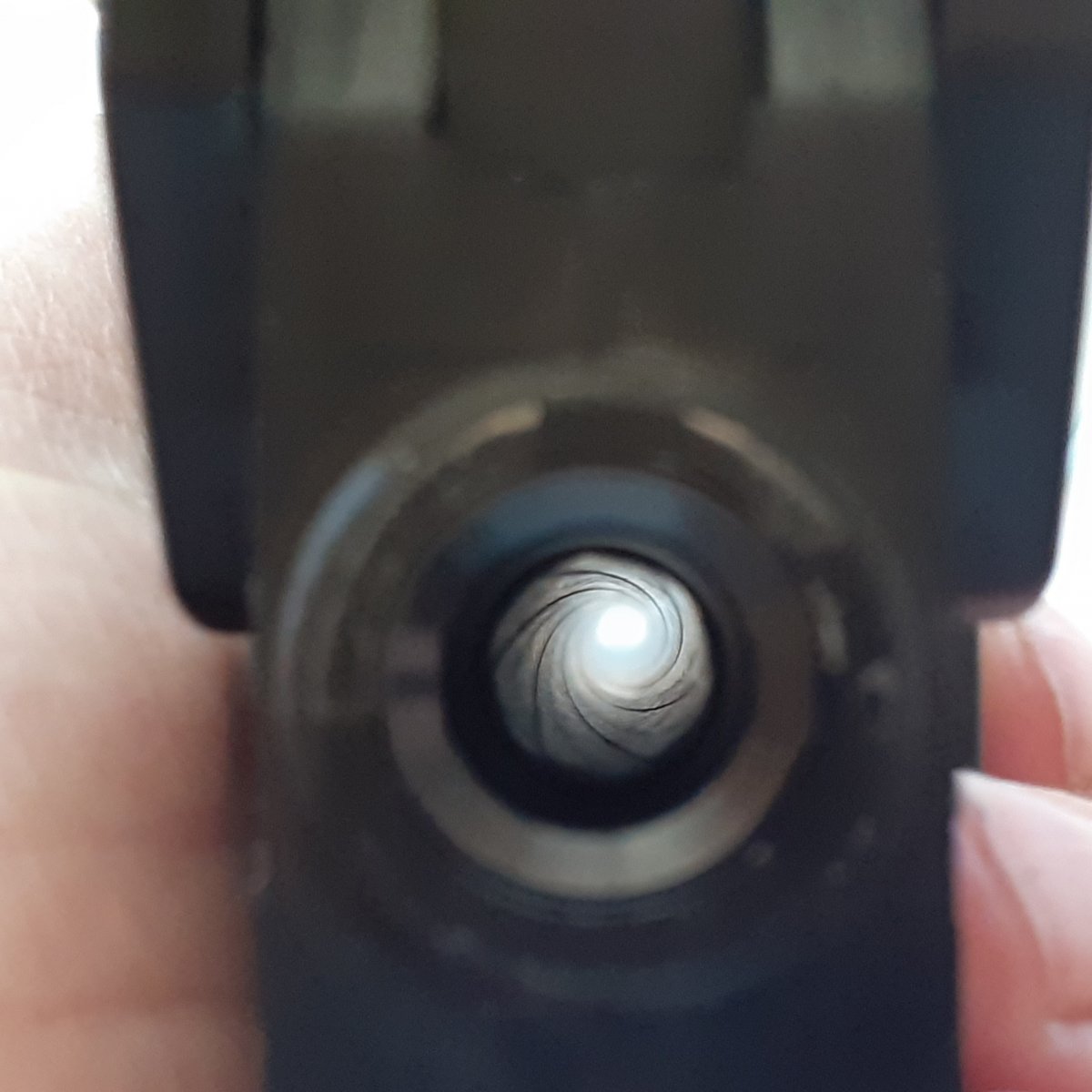 Ствол как и у всех КелТеков шершавый, хотя на амерофорумах некоторые утверждали что у них зеркало. Понимаю конечно, что у всех своё понимание зеркала. Интересно почему у вас такая гайка, на остальных фото из последней партии гайка старого образца.