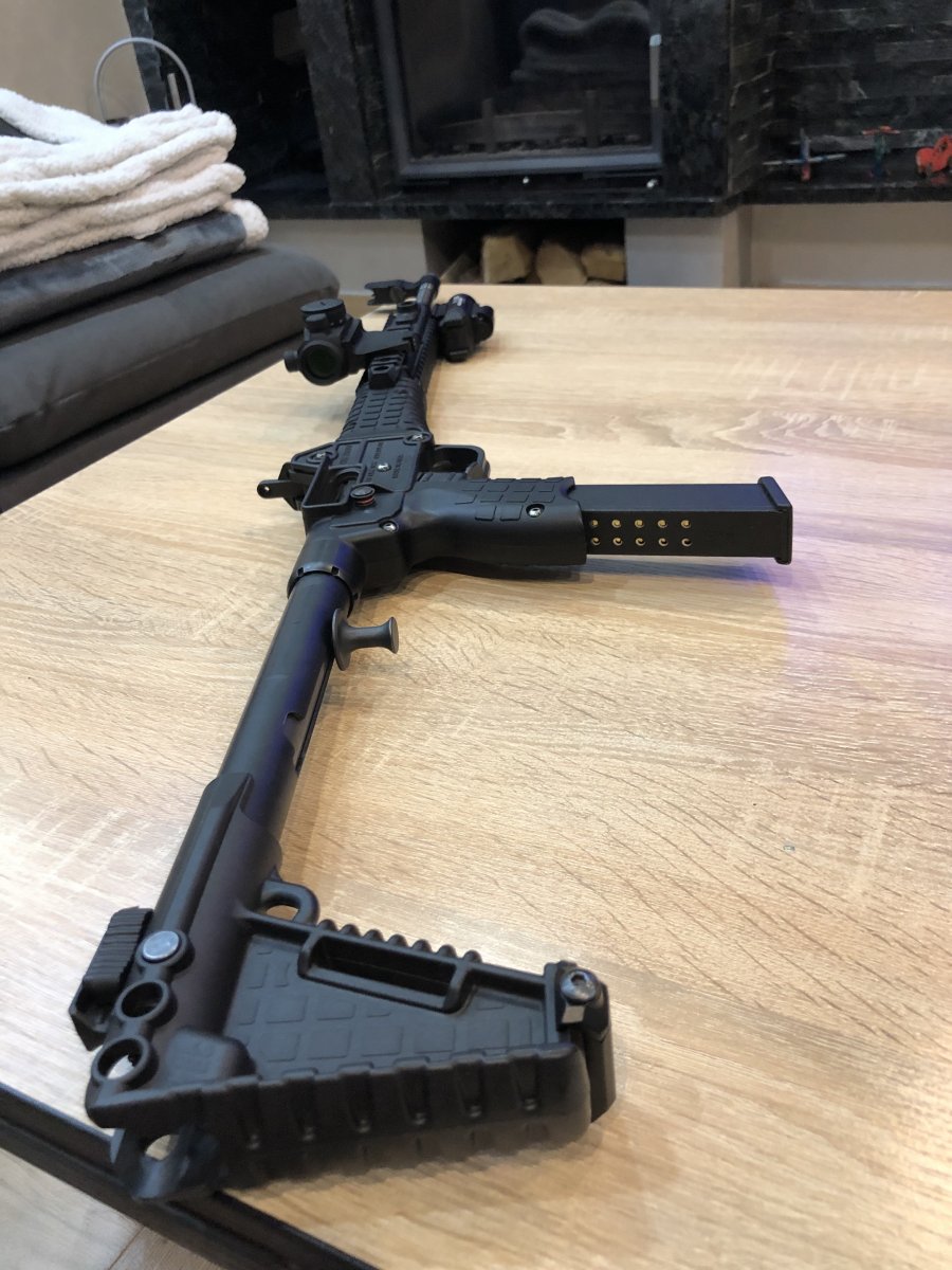 Купил из новой партии (старая метал. гайка приклада, но верхняя планка пикатинни уже ровная), сжег 100+ патронов (Магтеч и СТС все норм, на S&B 1 из 20 был слабый накол капсуля, и часто повторно не срабатывали, в плане подачи все идеально. Впечатления такие: радует компактность и легкость, но при стрельбе ощутимо лягается и через мех. прицельные быстро стрелять не получается. Спуск мне нормально (я малоопытный стрелок, сравниваю со своей АРкой (DB-15 .223). Ставил коллиматор (кстати после снятия и повторной установки - СТП не ушла) - то стало лучше, но чуть мешают штатные прицельные. Со временем подберу коллиматор удобной формы (думаю брать не в виде цилиндра, а с одной линзой, например HOLOSUN HS510C, и сниму мушку и целик. Коллиматор будет стоять на верхней планке, и при складывании будет упираться в трубу приклада (поставлю там резиновый упор. В итоге карабин будет складываться в виде буквы " V ", по длине будет так же компактно, но чуть шире, и без фиксации штатной защелкой. Покупкой доволен, если брать его не для спорта (а может при доводке и там можно будет использовать), а для дома-семьи, для развлекательно-тренировочных пострелушек, чтоб бросить в рюкзак (кстати помещается в отсек для ноутбука) и выбраться в лес\на реку на неделю, чтоб он был для самоуспокоения = просто суперский вариант как по мне.