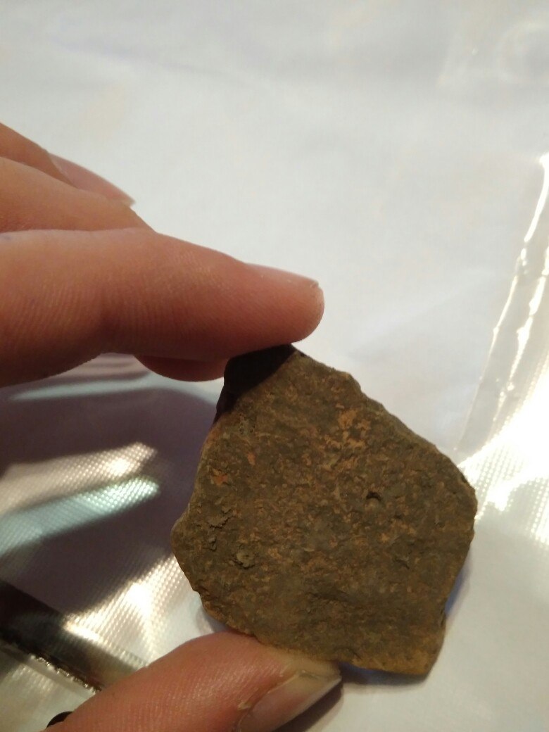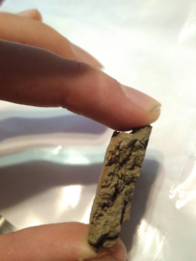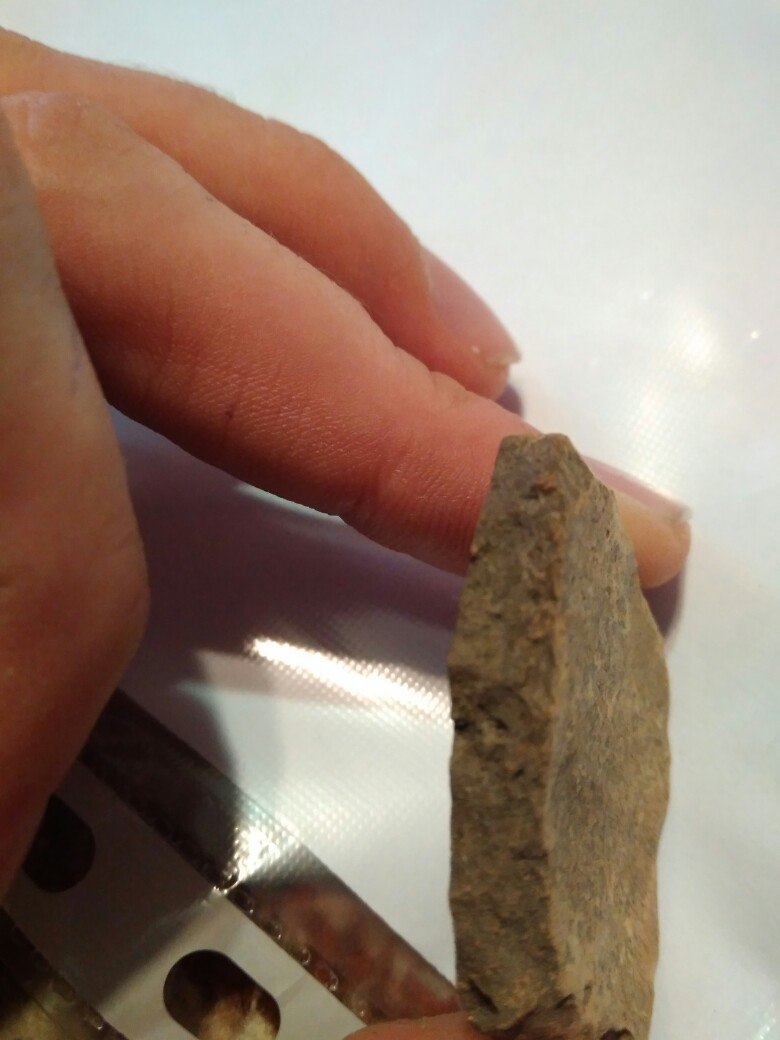 По фото не совсем понятно. Но это "лепнина", то есть кусочки посуды изготовленной без гончарного круга, в наших краях такая керамика использовалась от неолита до пеньковской и роменской культуры. Если попадутся кусочки с каким-то характерным орнаментом или венчиком, можно будет точнее сказать.