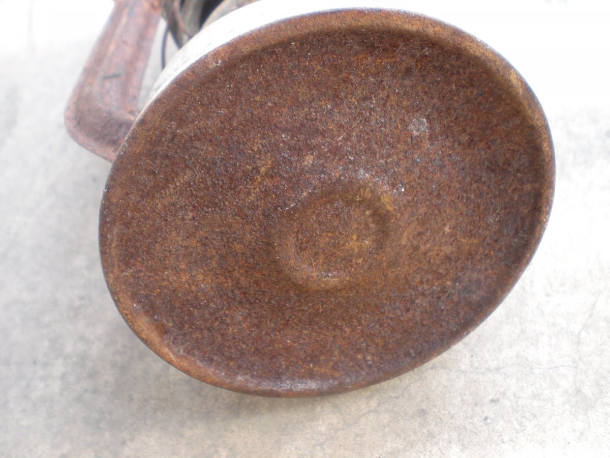 Приветствую у меня есть кружка с похожим клеймом и правильной дужкой на войну, хотя такие выпускались и после войны клеймо так и не определили и сайт сравните по форме http://savok.name/1286-sovetskie-kerosinovye-lampy.html