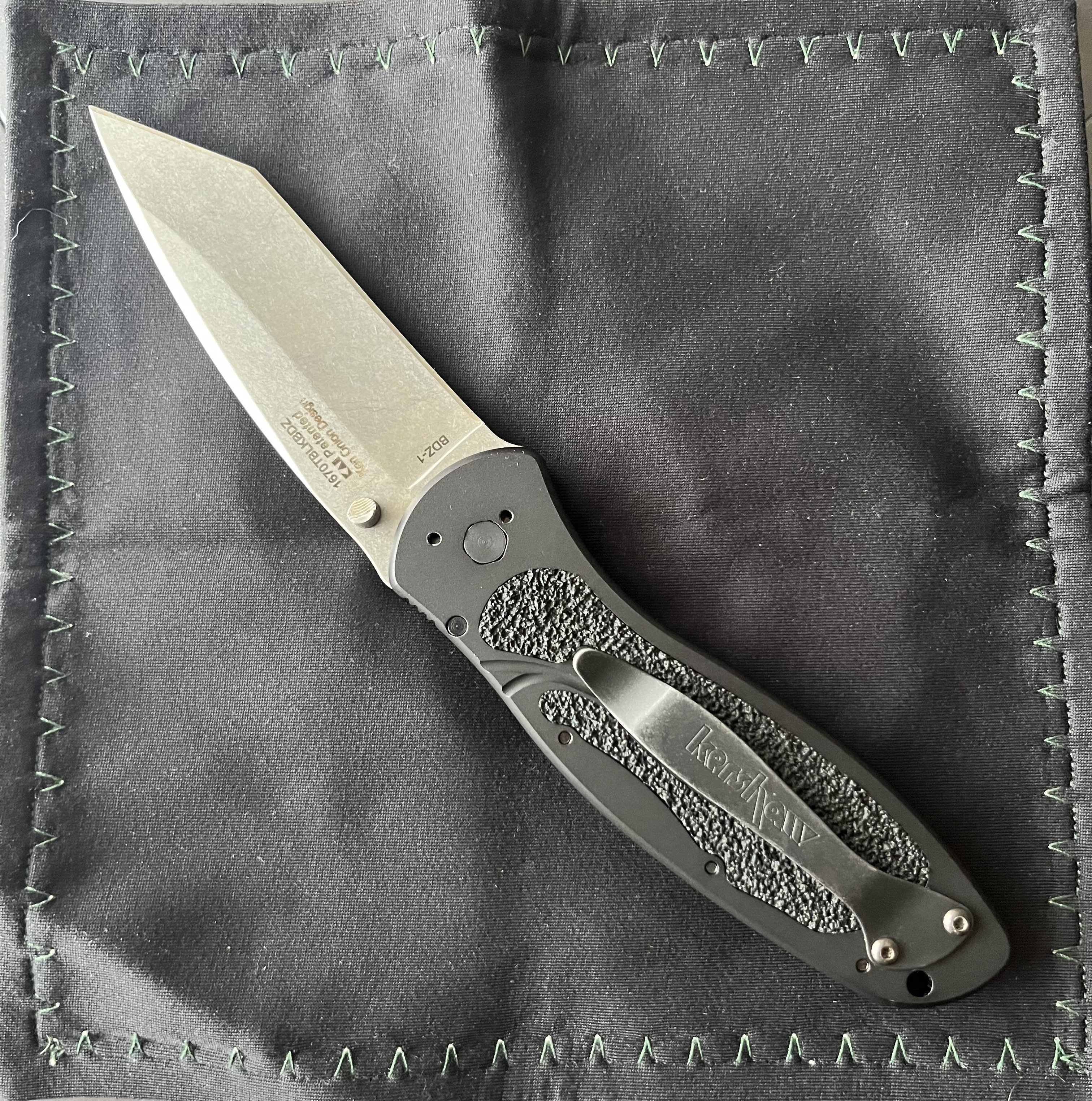 Kershaw Blur 1670TBLKBDZ Общая длина: 200 мм. Длина клинка: 86 мм. Толщина клинка: 3,0 мм. Система открывания клинка: SpeedSafe® assisted opening. Механизм фиксации клинка: Liner lock. Материал клинка: BDZ-1, stonewashed finish (58-59HRC). Материал накладок рукояти: Anodized Aluminum, Trac-Tec inserts. Вес: 110 г. Клипса: Right Handle (Tip-Down, Tip-Up) Страна поставщик/страна изготовления: США. Состояние: б/у. Точился, резал, без коробки. Цена : 3500