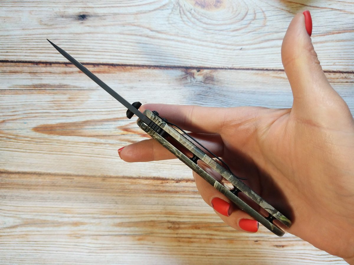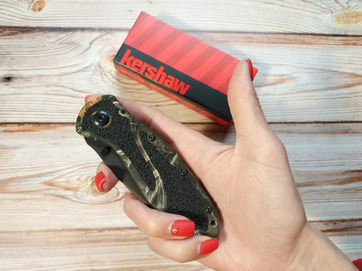 Предлагаю складной нож от компании Kershaw. Модель Blur Camo (1670CAMO). Оригинал. Про серию ножей Blur от компании Kershaw можно сказать: «Ножи, которые действительно удались на 100%». Средний размер и округлые формы, скошенный шпенёк с насечкой, в паре с ассистом, бритвенно-острое лезвие с рекурвой, тугая клипса и стабильная шведская сталь - этот нож делают детали, и делают настолько успешно, что уже более 10-ти лет Блюр прочно занимает первые места во всевозможных топах EDC сегмента. Очень простой на вид, без кричащих изысков, он доказывает своё превосходство попадая к вам в руки – именно в этот момент происходит понимание замысла автора (к дизайну приложил руку известный ножедел и изобретатель Кен Онион (Ken Onion)). В конструкции Kershaw Blur 1670 Camo всё в тему и всё к месту, каждая деталь и линия несут свой смысл и выполняют свою функцию. Модель Camo, как следует из названия, отличается шикарным камуфлированным окрасом рукояти, что в купе с чёрным покрытием клинка и вставками, имитирующими кожу ската, привносят в облик этого складня характерные тактические черты. И ещё один немаловажный момент – этот нож производится в США (о чём дополнительно свидетельствует небольшая надпись на рукояти), а это означает гарантированно высокое качество изделия. Клинок Kershaw Blur Camo (1670CAMO) изготовлен из шведской коррозионностойкой стали - Sandvik 14C28N. Эта сталь, благодаря сбалансированному химическому составу, сочетает в себе высокую твёрдость и хорошую устойчивость к коррозии. Клинок Kershaw Blur Camo легко поддаётся правке и заточке и, в то же время, долго сохраняет остроту режущей кромки, стойко сопротивляясь появлению микросколов и заминов. Клинок, просто песня – острый кончик имеет хорошую проникающую способность, а вогнутые спуски вкупе с тонким сведением дарят владельцу Kershaw Camo шикарный рез и бритвенную остроту. Для открытия клинка любой свободной рукой предусмотрены двусторонние скошенные шпеньки, имеющие насечку. Эта самая насечка способствует хорошему сцеплению пальца со шпеньком в процессе раскрытия клинка. Режущая кромка имеет S-образный изгиб (рекурву), это в определённой степени усложняет заточку, но увеличивает её полезную длину и делает рез вогнутой частью более агрессивным. Чёрный финиш клинка именуется DLC – Diamond-Like Coating – это очень прочное износостойкое покрытие, имеющее низкий коэффициент трения. Накладки из алюминия позволяют снизить вес изделия, они анодируются во всевозможные цвета и оттенки, так что каждый может найти Blur на свой вкус. В нашем случае это анодирование в цвет камуфляжа от Кершоу. Неизменными остаются чёрные вставки оригинальной формы, имитирующие кожу ската (материал Trac-Tec®), они обеспечивают надёжное сцепление с ладонью и приятные тактильные ощущения. Обтекаемые формы рукояти удобно ложатся в ладонь, при этом она не слишком полная и не ощущается инородным предметом в кармане. Под накладками скрываются усечённые стальные лайнеры и пружина ассиста. На ноже установлен SpeedSafe® – это запатентованная «система помощи при открытии ножа». За работу этой системы отвечает торсионный стержень, скрытый внутри рукояти. Чтобы привести клинок Kershaw Blur Camo 1670CAMO в движение достаточно надавить на шпенёк, тем самым стронув клинок с места, остальное ассист сделает за вас. Ссылка модели на сайте производителя: https://kershaw.kaiusaltd.com/knives/knife/blur-camo Видео, от производителя: Еще паро