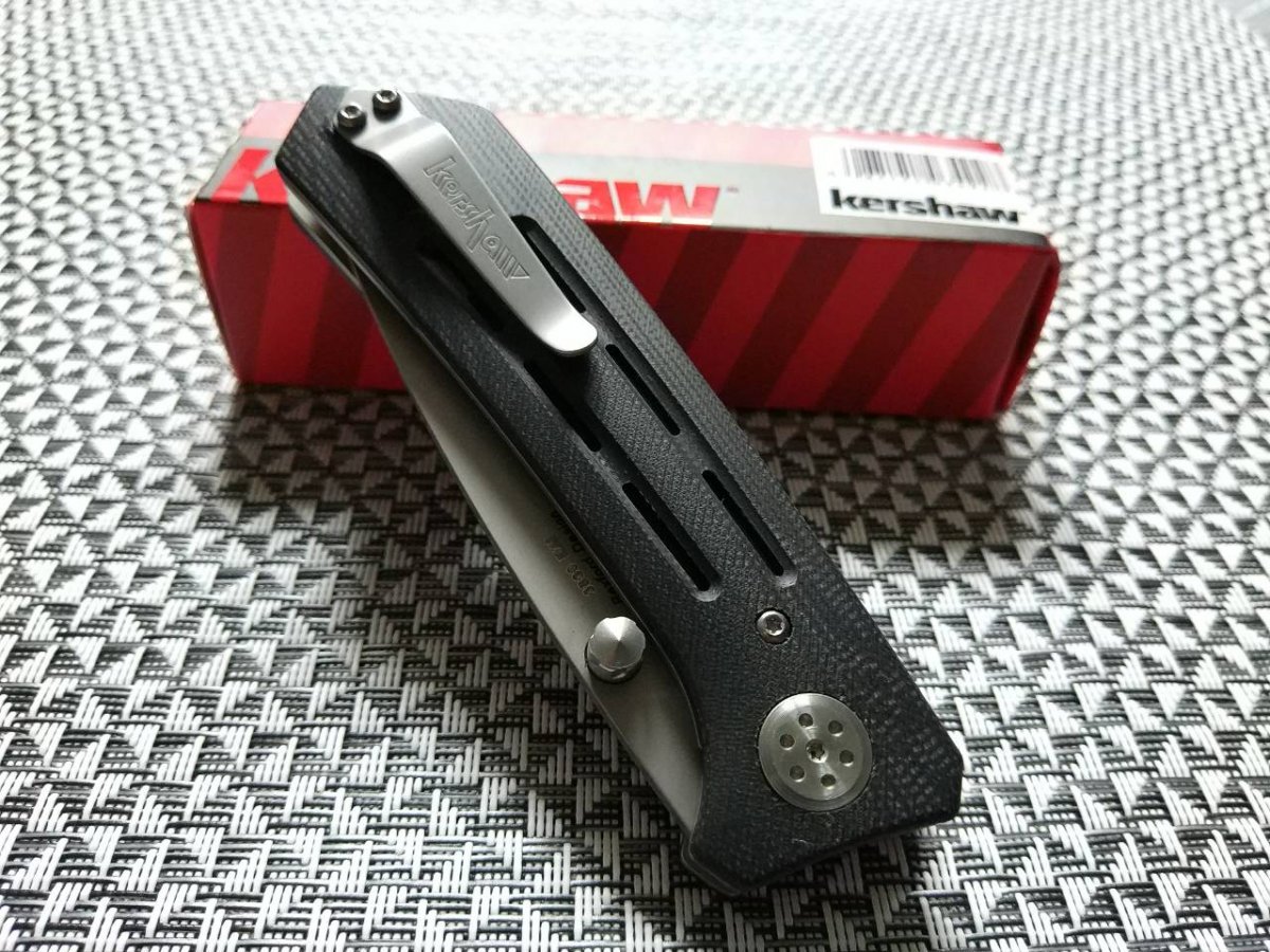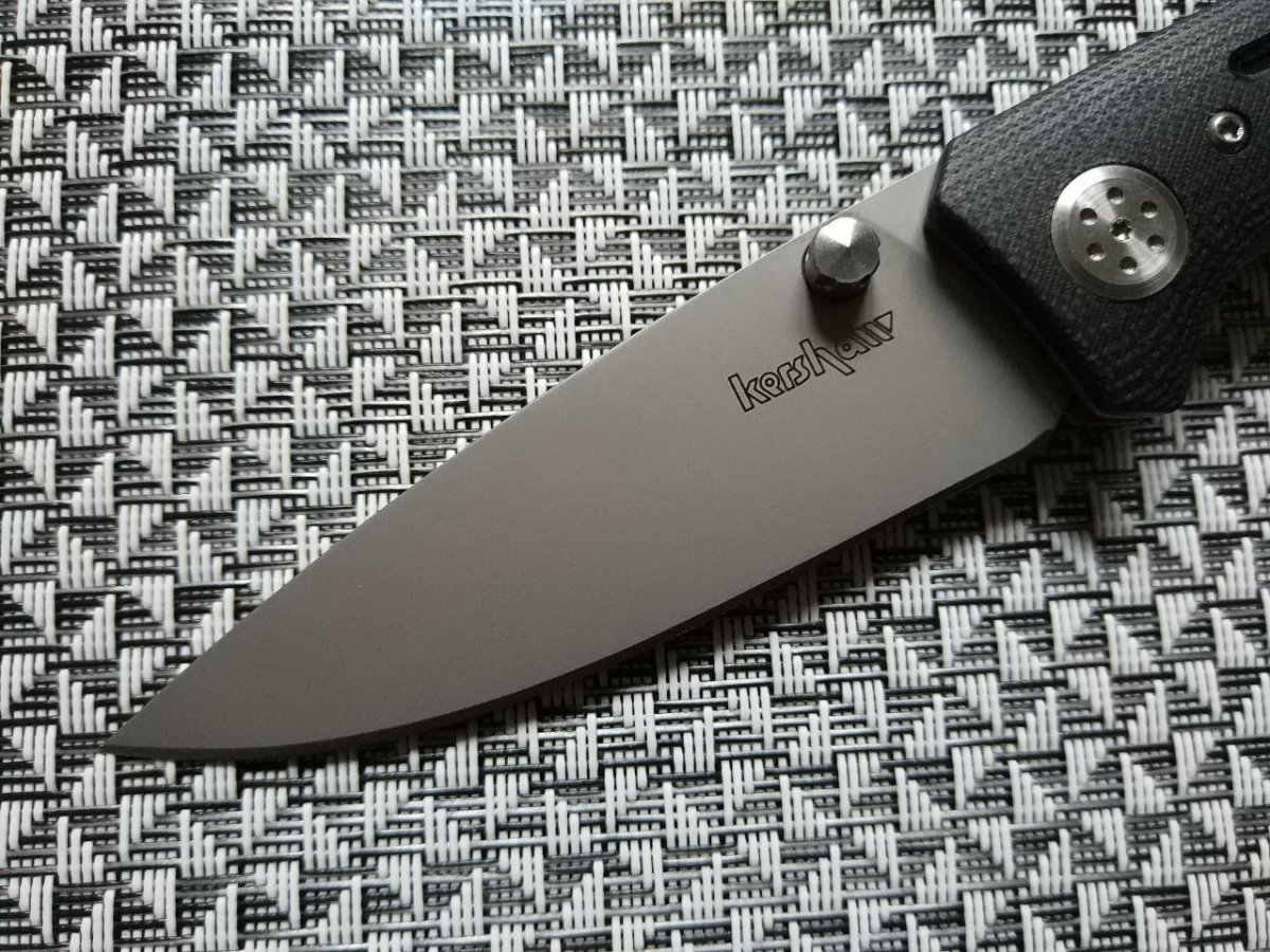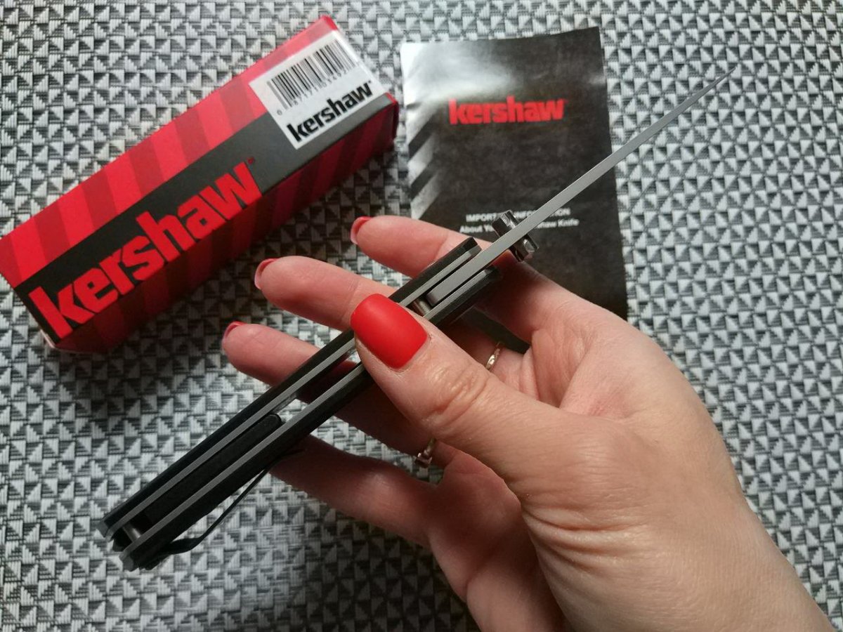 Продуманная геометрия клинка – тройной клин с прямыми спусками позволяет ножу отлично резать самые разные материалы. Тип обработки клинка – Bead Blast. Оригинально выглядит шпенёк Kershaw Injection - он имеет интересную насечку, которая улучшает сцепление пальца во время открытия и просто симпатично смотрится.