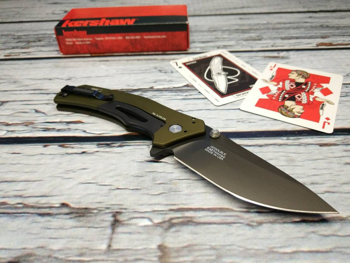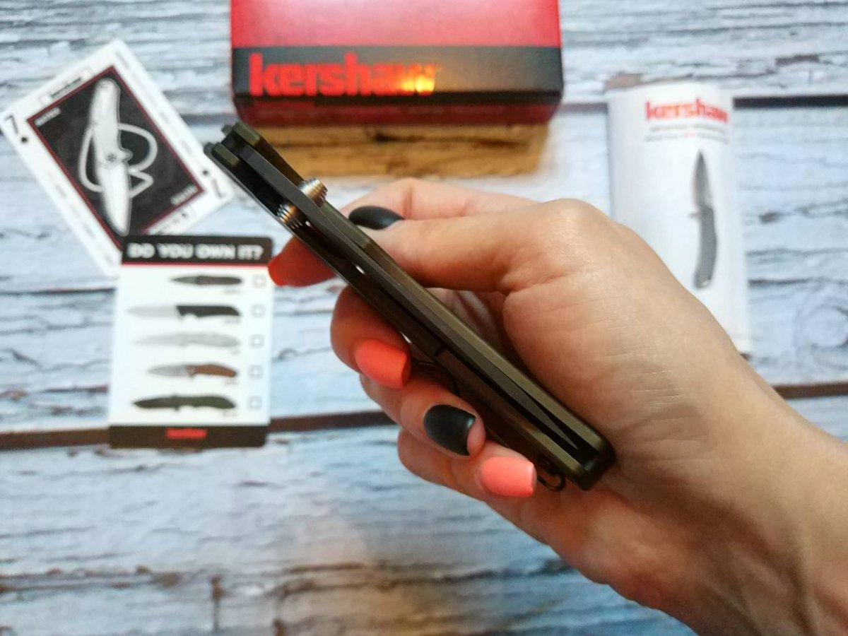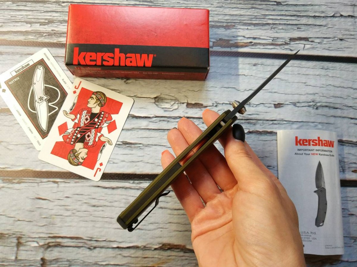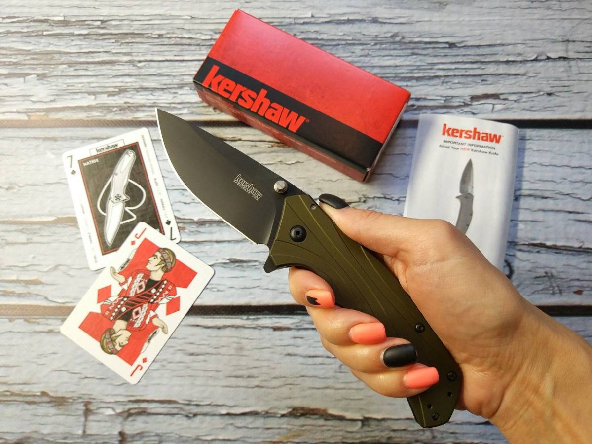 Предлагаю складной нож от компании Kershaw. Модель Knockout Olive Black (1870OLBLK). Оригинал. О ноже Kershaw Knockout можно сказать что он «заточен» под EDC (ежедневное) использование. Небольшой, но со вполне рабочими параметрами нож, легкий, с крепкой конструкцией, хорошей геометрией клинка и эргономичной плоской рукоятью, отличной для ежедневного использования сталью и глубокой посадкой на кармане. И ещё один немаловажный момент – этот нож производится в США, а это означает гарантированно высокое качество изделия. Теперь обо всем этом немного более детально. Клинок Kershaw Knockout Olive Black 1870OLBLK изготовлен из шведской коррозионностойкой стали - Sandvik 14C28N. Эта сталь, благодаря сбалансированному химическому составу, сочетает в себе высокую твёрдость и хорошую устойчивость к коррозии. Клинок из этой стали легко поддаётся правке и заточке и, в то же время, долго сохраняет остроту режущей кромки, стойко сопротивляясь появлению микросколов и заминов. Форма клинка - Drop Point с высокими (от 3/4 ширины лезвия) прямыми спусками и правильной геометрией для EDC-использования (ширина лезвия около 34 мм, длина РК около 83 мм). Финиш клинка - DLC coating. Самое стойкое покрытие на сегодняшний день, которое на этой модели выполняет функцию дополнительной защиты от коррозии и при этом отлично вписывается в общий дизайн ножа. Рукоять ножа полуоткрытого типа состоит из двух плашек из анодированного (в насыщенный и действительно красивый оливковый цвет) алюминия 6061-T6 и небольшого спейсера. Рукоять имеет оригинальное продольное текстурирование в виде изогнутых полос. Наличие горбика на спинке рукояти и небольшая изогнутая форма с большими подпальцевыми выемками гарантирует комфортный пистолетный хват. Хотя не так… Рукоять удобна во всех хватах, особенно в пистолетном. Так правильнее. Действительно, несмотря на компактность рукояти, она имеет очень удачную эргономику и крайне удобно лежит в руке. Sub-Frame Lock – такое название носит замок фиксирующий клинок Kershaw Knockout. На деле это означает, что фрейм запирающий пяту клинка, крепится к одной из накладок, образующих рукоять и так как, по сути, не является с ней одним целым, и появляется приставка Sub. Такое решение применяется для облегчения веса ножа, без потерь прочности и надёжности, к тому же это весьма интересно смотрится. Нож полуавтомат или нож с ассистом - так называют клинки «с системами помощи» при раскрытии. Система SpeedSafe®, реализованная в Kershaw Knockout помогает открывать нож легко и чётко, надавив на плавник (образующий приличную гарду в раскрытом состоянии), либо при помощи двухсторонних шпеньков. Страгиваем клинок с места, а дальше скрытая в рукояти пружина всё сделает за Вас. Так же на ноже присутствует темлячное отверстие и съемная переставляемая в три положения клипса глубокой посадки. Ссылка модели на сайте производителя: https://kershaw.kaiusaltd.com/knives/knife/knockout-olive-black Видео, от производителя: Еще парочка, для наглядности: Обзоров по этой модели в сети довольно много, желающие могут дополнительно поискать-посмотреть. Характеристики, заявленные производителем: Общая длина: 200,0 мм. Длина клинка: 83,0 мм. Толщина клинка: 3,0 мм. Система открывания клинка: SpeedSafe® assisted opening. Механизм фиксации клинка: Sub-Frame Lock. Материал клинка: Sandvik 14C28N, DLC coating (58-59HRC). Материал накладок рукояти: 6061-T6 Anodized Aluminum. Вес: 110 г. Клипса: 3-position deep-carry pocketclip (right tip-up/down; left tip-down). Страна поставщик/стр