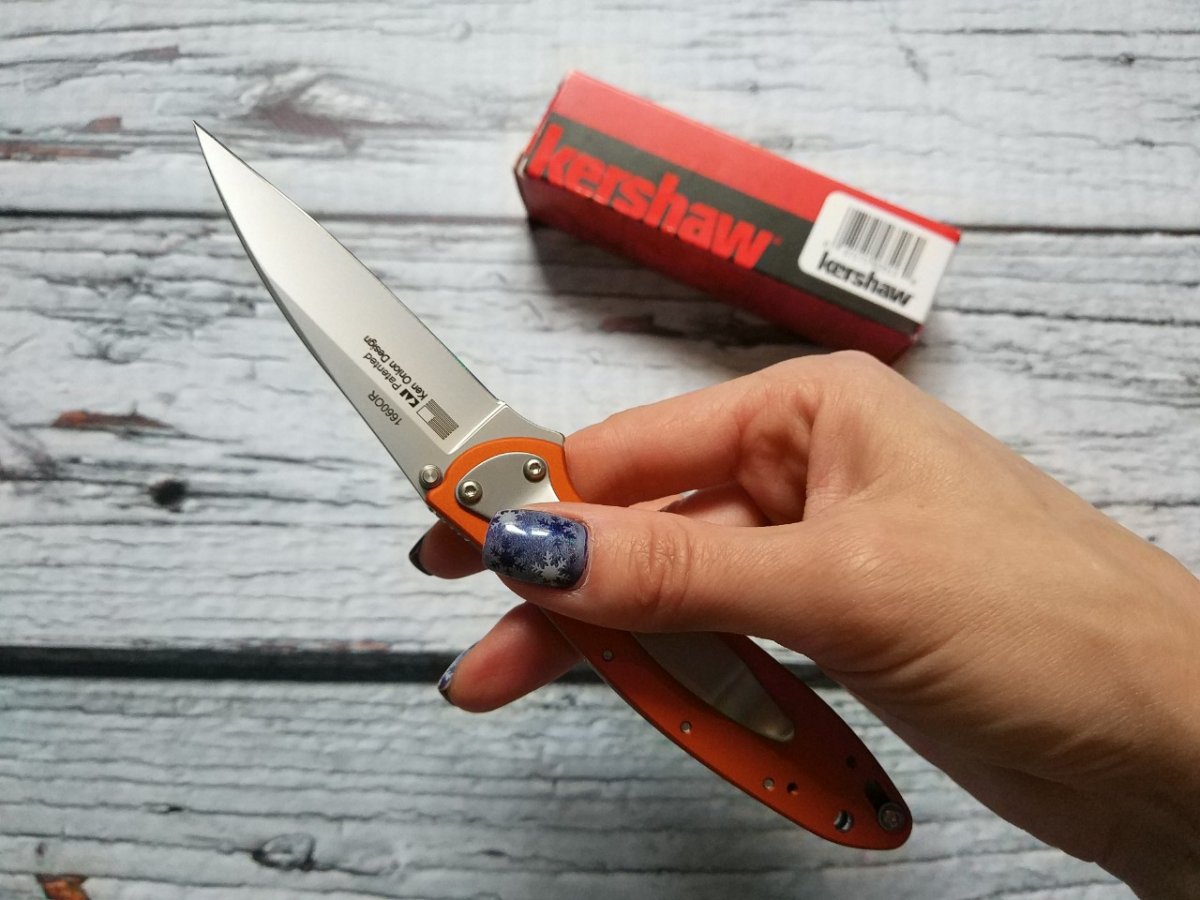 Предлагаю складной нож от компании Kershaw. Модель Leek (1660OR). Оригинал. Яркий, лёгкий, стремительный и невероятно изящный нож Kershaw Leek 1660OR спроектирован именитым дизайнером, ножеделом и мастером своего дела Кеном Онионом (Ken Onion). Будучи произведённым в США, этот компактный резачок отличается стабильно высоким качеством, отличной механикой и множеством вариантов исполнения. Нож Kershaw Leek – можно носить с костюмом и использовать для вскрытия деловой корреспонденции, или поместить в карман своих любимых джинс и ежедневно доверять ему нарезку сыра и колбаски полупрозрачными ломтиками в обеденный перерыв. В любом случае этот нож не останется незамеченным и не раз ваши друзья, и знакомые будут просить посмотреть его поближе и повертеть в руках. Leek – нож настроение, он очень позитивный и приятный во всех отношениях. Шведская сталь Sandvik 14C28N встречается на большинстве клинков Kershaw, произведённых в Штатах, нож Leek 1660 не стал исключением. Эта сталь, благодаря сбалансированному химическому составу, сочетает в себе высокую твёрдость и хорошую устойчивость к коррозии. Клинок легко поддаётся правке и заточке и, в то же время, долго сохраняет остроту режущей кромки, стойко сопротивляясь появлению микросколов и заминов. Финиш клинка матовый (bead-blasted). Покатый обух клинка и практически прямая режущая кромка – Kershaw окрестили этот профиль, как модифицированный drop point. Острие клинка Kershaw Leek 1660OR игольно-острое и деликатное, не стоит нагружать его тяжёлой работой, оно создано, чтоб подрезать и вскрывать что-либо одним изящным росчерком. Высокие слабовогнутые спуски, при небольшой толщине обуха однозначно указывают на то, что этот клинок «резак». Kershaw Leek отлично работает по продуктам, особенно хорошо он справляется с фруктами, нарезать яблочко для перекуса этим красавцем - одно удовольствие. Для открытия на клинке предусмотрены симметричные шпеньки, удачно расположенные и не крадущие полезную длину РК. Так же удобно открывать клинок Leek 1660 плавником, совсем незначительно выступающим за пределы рукояти. Нож полуавтомат или нож с ассистом, так называют клинки с подобными системами помощи при раскрытии. Запатентованная система Speed Safe, реализованная в Kershaw Leek 1660OR помогает открывать нож легко и чётко, надавив на плавник или шпенёк. Страгиваем клинок с места, а дальше скрытая в рукояти пружина всё сделает за вас. В то время как яркий оранжевый цвет радует глаз, матовая поверхность накладок дарит приятные тактильные ощущения и не скользит в руках. Рукоять Kershaw Leek 1660 это стальные лайнеры, разделённые спейсером и яркие накладки из анодированного алюминия (марки 6061-T6), скрепляется конструкция тремя винтами и осевым узлом. Форма рукояти проста и лаконична, в ней нет острых углов и вычурных элементов, тонкая и вытянутая – под стать клинку. Замок - Liner lock, простой и надежный. В конструкции ножа так же предусмотрен предохранитель блокирующий клинок в закрытом положении (Tip-lock slider), его ползунок располагается на левой стороне рукояти ближе к навершию. Карманная клипса и темлячное отверстие дополняют общую картину. Ссылка модели на сайте производителя: https://kershaw.kaiusaltd.com/knives/knife/leek-orange Видео от производителя: Еще парочка, для наглядности: Обзоров по этой серии моделей от Кершоу в сети довольно много, желающие могут дополнительно поискать-посмотреть. Характеристики, заявленные п