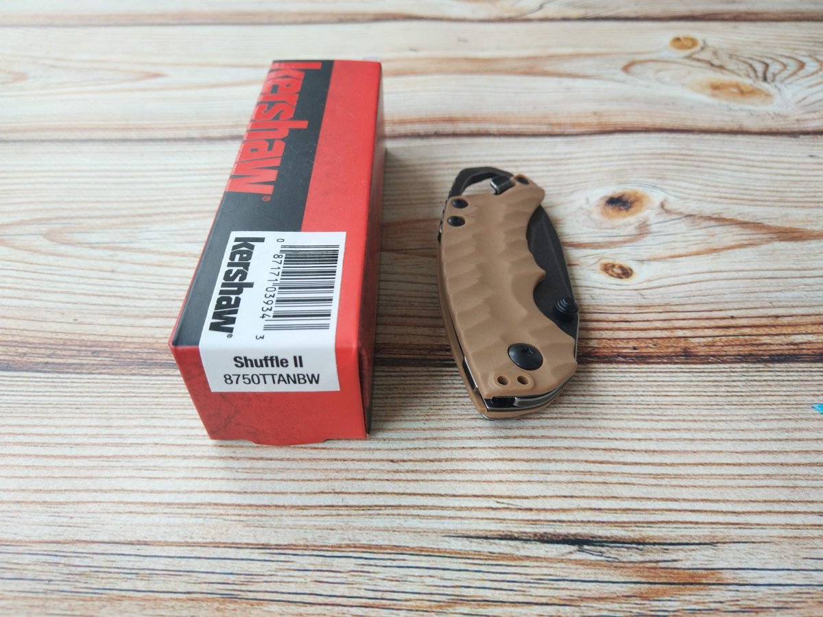 Предлагаю складной нож от компании Kershaw. Модель Shuffle II Tan (8750TTANBW). Оригинал. Серия городских складных ножей Shuffle от компании Kershaw с острым функциональным клинком и небольшим весом отлично подходит для ежедневных задач. Этот инструмент завоевал приличную популярность у пользователей по всему миру и на данный момент выпускается компанией в достаточно большом количестве вариаций. Давайте рассмотрим немного подробнее модель Shuffle II Tan 8750TTANBW, представленную в объявлении. Если совсем коротко, то нож Kershaw Shuffle II - это маленький складной тантоид с открывалкой и отверткой. Легкий, компактный, не обременительный для ношения (даже в легких шортах), но при этом вполне полноценный «рабочий» нож. Нож Kershaw Shuffle II имеет красивую удобную рукоять с обработкой "под камень" и клинок с финишем Blackwash. Форма клинка Kershaw Shuffle 2 – вариация «на тему» танто. Клинок достаточно широк, чтобы работать им "щепотью", достаточно толстый, чтобы упереться большим пальцем, а форма танто придает кончику клинка Kershaw Shuffle II большую прочность при «ковырятельных» и «пробивающих» действиях. Сталь на клинке - 8Cr13MoV, что уже традиционно для Kershaw. Выпуская множество моделей своих ножей компания, используют именно эту марку стали, по праву считая её хорошо сбалансированной по сочетанию своих эксплуатационных характеристик к цене. «Шафл» имея клинок из этой стали, хорошо точится, неплохо держит заточку и устойчив к коррозии. Финиш клинка BlackWash™. Рукоять Kershaw Shuffle II собрана на стальных лайнерах и имеет две накладки из материала GFN (нейлон, армированный стекловолокном). Фактура рукояти Kershaw Shuffle II - битый камень, довольно популярный в последние годы «узор». При своей небольшой длине, рукоять довольно комфортна. Это объясняется сочетанием текстуры (обеспечивающей надежное сцепление с ладонью) и наличием чойла (частично сформированного формой клинка, частично формой рукояти), «виртуально» удлиняющим рукоять и обеспечивающим комфортное расположение на рукояти всех пальцев руки. Клипса ножа Kershaw Shuffle II может быть установлена в 2-х положениях - для левши и правши. В кармане нож Kershaw Shuffle II будет всегда располагаться «открывалкой вниз». В торце рукояти нож Kershaw Shuffle II имеет открывалку для бутылок (даже две, по одной на каждую сторону), в отличие от первой серии эти открывалки является частью лайнеров, а не спейсера. Металлический спейсер ножа Kershaw Shuffle II имеет насечку (на которую отлично ложится большой палец при обратном хвате) и служит одновременно шлицевой отверткой. А его общий габарит может позволить использовать его при необходимости и как «мини молоток», так же в нем проделано большое отверстие, которое позволяет использовать любые варианты темляков и подвесов (включая стандартную стропу или карабин). Ссылка модели на сайте производителя: https://kershaw.kaiusa.com/shuffle-ii-tanto-tan-blackwash.html Видео от производителя: Еще парочка, для наглядности: Разнообразных обзоров и видео по этой серии моделей в сети довольно много, желающие могут дополнительно поискать-посмотреть. Характеристики, заявленные производителем: Общая длина: 160,02 мм. Длина клинка: 66,04 мм. Толщина клинка: 2,8 мм. Сталь клинка: 8Cr13MoV, black-oxide BlackWash™ finish. Материал накладок рукояти: Glass-filled Nylon (нейлон, армированный стекловолокном). Замок: Liner Lock. Клипса: Reversible pocketclip (left/right tip-down). Твердость: 57-59HRC. Вес: 85 г. Страна поставщик: США. Страна изготовления: Китай. Упаков