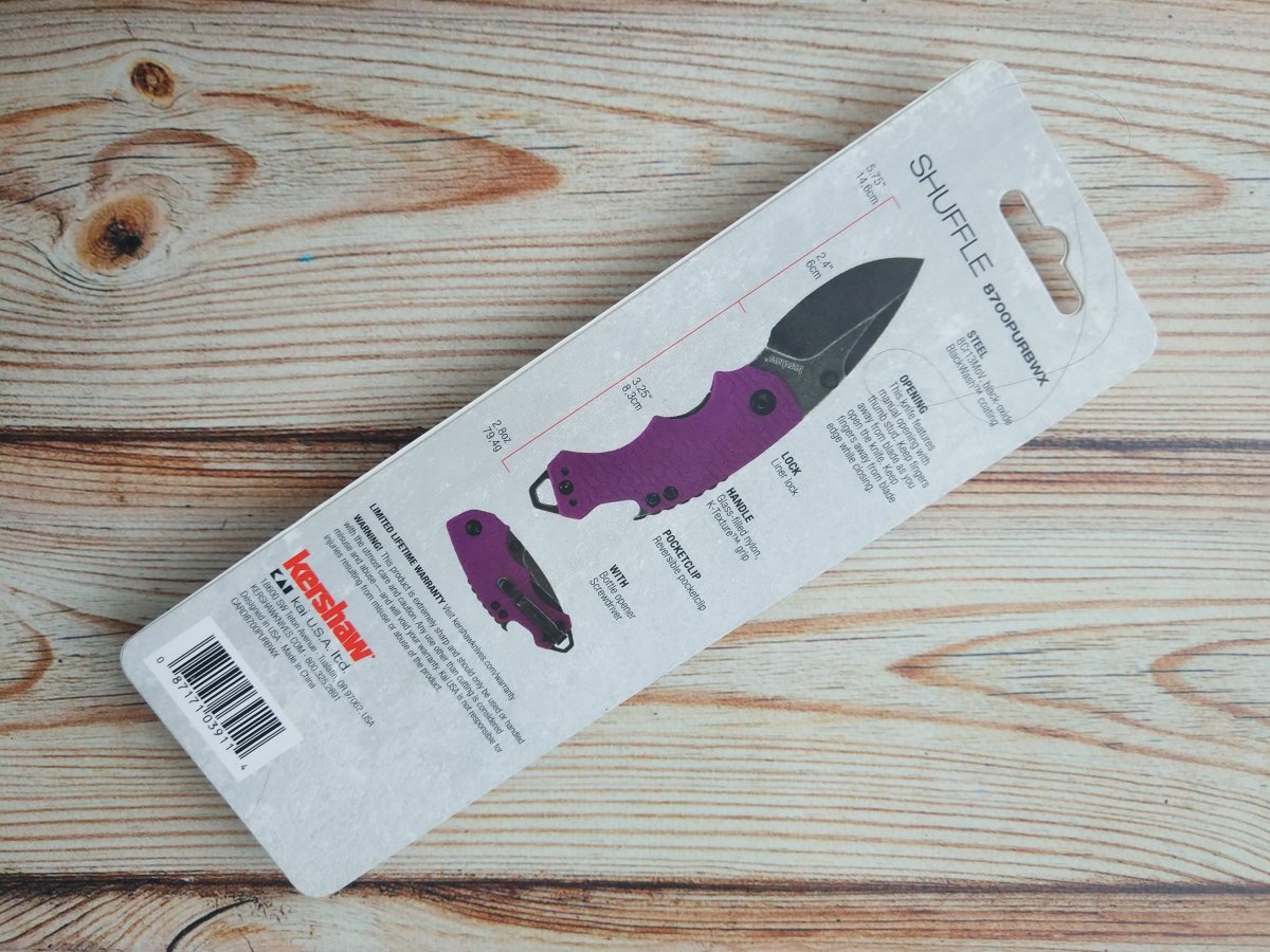 Предлагаю складной нож от компании Kershaw. Модель Shuffle Purple BlackWash (8700PURBW). Оригинал. Серия городских складных ножей Shuffle BW от компании Kershaw с острым функциональным клинком и небольшим весом отлично подходит для ежедневных задач. Этот инструмент завоевал приличную популярность у пользователей по всему миру и на данный момент выпускается компанией в достаточно большом количестве вариаций. Форма клинка Kershaw Shuffle Purple BlackWash – короткий листообразный клин. Клинок Shuffle достаточно широк, чтобы работать им "щепотью", достаточно толстый, чтобы упереться большим пальцем. Сталь на клинке Kershaw Shuffle - 8Cr13MoV, что уже традиционно для Kershaw. Выпуская множество моделей своих ножей компания, используют именно эту марку стали, по праву считая её хорошо сбалансированной по сочетанию своих эксплуатационных характеристик к цене. «Шафл» имея клинок из этой стали, хорошо точится, неплохо держит заточку и устойчив к коррозии. Финиш клинка black-oxide BlackWash™ finish. Плашки Kershaw Shuffle отлиты из материала GFN (нейлон, армированный стекловолокном) и монтированы на стальных лайнерах. При своей небольшой длине, рукоять довольно комфортна. Это объясняется сочетанием фирменной насечки K-Texture™ grip (обеспечивающей надежное сцепление с ладонью) и наличием чойла (частично сформированного формой клинка, частично формой рукояти), «виртуально» удлиняющим рукоять и обеспечивающим комфортное расположение на рукояти всех пальцев руки. Металлический спейсер ножа Kershaw Shuffle служит одновременно открывалкой для бутылок, а его выступ на пяте рукояти служит шлицевой отверткой. В этом же выступе прорезано отверстие под темляк. Довольно большого диаметра. Клипса у ножа небольшая, довольно глубокой посадки, надежная, и очень цепкая. У Kershaw Shuffle два варианта подвеса клипсы – для левши и правши. Ссылки модели на сайте производителя: https://kershaw.kaiusaltd.com/knives/knife/shuffle-purple Видео от производителя: Разнообразных обзоров и видео по этой серии моделей в сети довольно много, желающие могут дополнительно поискать-посмотреть. Характеристики, заявленные производителем: Общая длина: 146 мм. Длина клинка: 60 мм. Толщина клинка: 2,8 мм. Сталь клинка: 8Cr13MoV, black-oxide BlackWash™ finish. Материал накладок рукояти: Glass-filled Nylon (нейлон, армированный стекловолокном), текстура K-Texture™ grip. Замок: Liner Lock. Клипса: Съемная, два положения (право/лево, Tip-Up). Твердость: 57-59HRC. Вес: 80 г. Страна поставщик: США. Страна изготовления: Китай. Упаковка: Фирменная коробка или фирменный блистер. Не является холодным оружием по длине клинка. Нет в наличии Стоимость: грн. Резервы в темке, вопросы, пожелания - в личку. Фото: P.S. клейма на клинке и клипсе могут отличаться от партии к партии (в этой, да и не только в этой модели компания несколько раз меняла маркировку), для сомневающихся в оригинальности - на все ножи каждой партии есть подтверждающие происхождение документы (инвойсы). В другие города отправляю Новой Почтой (оплата за доставку при получении, по тарифам перевозчика). Оплата на карту Приват банка. Смотрите и другие мои темки о продаже: Складной нож Cold Steel Rajah 3 Складной нож Kershaw Launch 3 Blue Нескладной нож CRKT Strafe Нескладной нож Cold Steel Master Hunter Складной нож Kershaw Leek Складной нож SOG Flashback Складной нож Cold Steel Counter Point 1 Складной нож Kershaw DuoJet Нескладной нож Gerber Mark 2 Нескладной нож Cold Steel Steel Tiger Складной нож Kershaw Natrix Нескладной нож CRKT Carson F4 Нескладной нож Cold Steel Counter Tac 2 Складной нож Kershaw Passage
