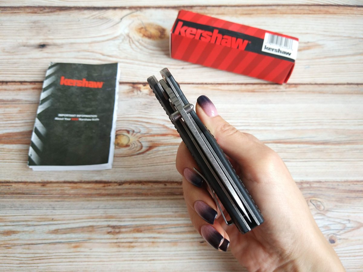 Предлагаю складной нож от компании Kershaw. Модель Swerve (3850). Оригинал. Kershaw Swerve (3850) – компактный EDC нож, не пасующий перед нагрузками. Swerve в переводе - поворот или изгиб и эти изгибы действительно просматриваются в облике ножа. Это и изгибы рукояти, имеющей полу-пистолетную форму, и змейка бекспейсера, и оригинальная насечка на обухе клинка. Нож Kershaw 3850 Swerve отлично справляется с силовым резом, достаточно упереть большой палец в возвышение обуха, а указательный в плавник флиппера. Именно фехтовальным хватом наиболее удобно удерживать нож. Немалая толщина лайнера, запирающего клинок так же говорит о готовности ножа к нагрузкам. Чем нож Kershaw Swerve станет для вас – полезным аксессуаром, который приятно покрутить в руках или добрым помощником, эксплуатируемым без зазрения совести решать Вам. Клинок ножа выполнен из стали 8Cr13MoV – широко применяемой Kershaw. Эта сталь проверена временем, технологический процесс изготовления и закалки налажен и отточен, это даёт стабильное качество исполнения и отличную цену конечного продукта. Клинок Kershaw Swerve устойчив к коррозии, хорошо точится и не плохо держит заточку. Нож показывает средние результаты по всем показателям, он действительно универсален. В меру резуч, в меру прочен, может уколоть и проковырять. Клинок Kershaw Swerve широкий листовидный, имеет высокие спуски и финишную обработку Stonewash. Открытие клинка осуществляется как плавником флиппера, так и двусторонними шпеньками. Механизм открывания Kershaw Swerve оснащён запатентованной системой помощи при открытии ножа SpeedSafe. В открытом состоянии плавник флиппера образует своеобразную гарду надёжно защищающую руку от соскальзывания на лезвие. Рукоять Kershaw Swerve, как и в целом нож весьма продумана. Два стальных лайнера облачены в 3D накладки с так называемой К-фактурой. Рукоять приятна на ощупь и прекрасно удерживается в мокрых или жирных руках. Пластиковый бекспейсер закрывает спинку рукояти на 2/3 и имеет фактуру напоминающую змейку. Оригинально выполнено крепление двухпозиционной клипсы, она просто вставлена в сквозное узкое отверстие и закреплена винтом с торца рукояти. При необходимости клипсу можно переставлять на правую или левую сторону рукояти, осевой узел при этом будет смотреть вниз. Ссылка модели на сайте производителя: https://kershaw.kaiusaltd.com/knives/knife/swerve Видео от производителя: Еще парочка, для наглядности: Обзоры по этой модели в сети есть, желающие могут дополнительно поискать-посмотреть. Характеристики, заявленные производителем: Общая длина: 184 мм. Длина клинка: 76 мм. Толщина клинка: 3,0 мм. Система открывания клинка: SpeedSafe® assisted opening. Механизм фиксации клинка: Liner lock. Материал клинка: 8Cr13MoV, stonewashed finish. Материал накладок рукояти: Glass-filled nylon, K-Texture™ grip. Вес: 136 г. Клипса: Reversible deep-carry pocketclip (left/right, tip-up). Страна поставщик: США. Страна изготовления: Китай. Упаковка: Фирменная коробка с полиграфическим вкладышем или фирменный блистер. Не является холодным оружием по длине клинка. Нет в наличии. Стоимость: грн. Резервы в теме, вопросы, пожелания - в личку. Фото: В другие города отправляю Новой Почтой (оплата за доставку при получении, по тарифам перевозчика). Оплата на карту Приват банка. Смотрите и другие мои темки о продаже: Складной нож Cold Steel Rajah 3 Складной нож Kershaw Launch 3 Blue Нескладной нож CRKT Strafe Нескладной нож Cold Steel Master Hunter Складной нож Kershaw Leek Складной нож SOG Flashback Складной нож 