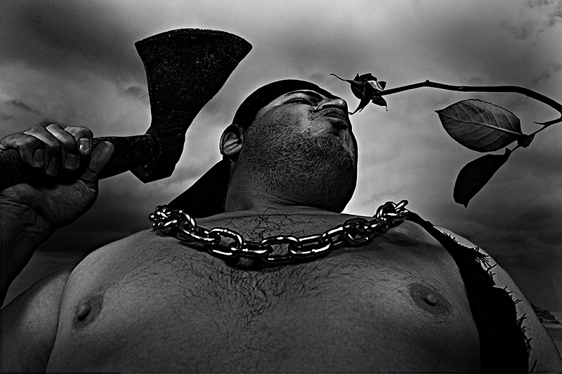 А он в ботах будет или как обычно босиком?... Бот без бот:D, оригинально))) А топор отберут на границе...:DИМХО