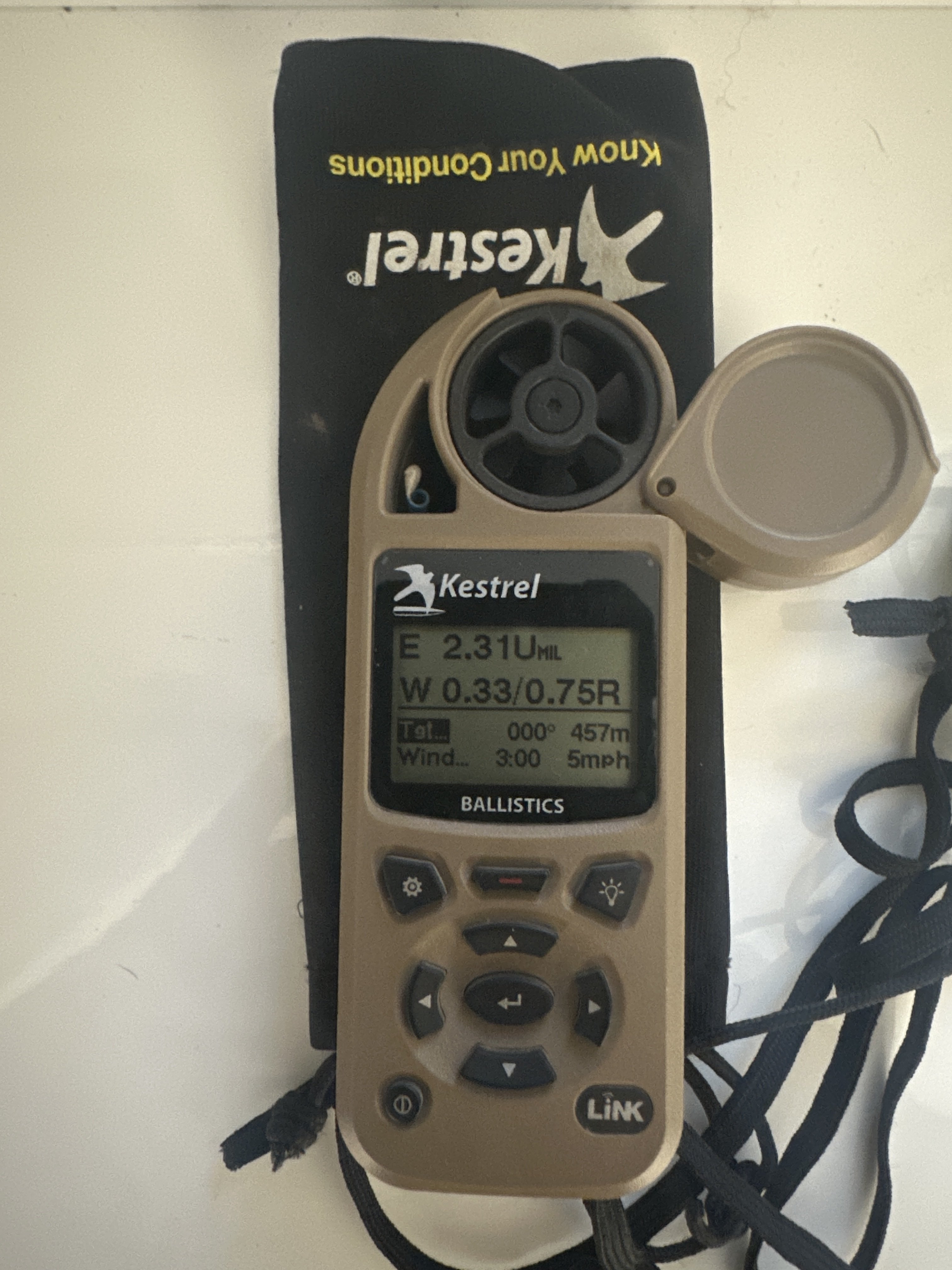 Кишенькова метеостанція з вбудованим балістичним калькулятором володіє тією ж точністю, надійністю і зручністю, що і прилад минулого покоління Kestrel 4500, але при цьому має багато нового. Якщо ви вже знайомі з Kestrel 4500, перше, що ви помітите - це більший дисплей з високою роздільною здатністю і контрастністю, з якого зручніше читати свідчення. Тут також є вбудована двоколірна підсвітка, особливо міцна лінза з полікарбонату і роз'єм під батарею типу АА. Також прилад може мати опцію LiNK для бездротового підключення до пристроїв з iOS або Android для використання додатків. Як і всі прилади Kestrel, метеостанція 5й серії має ударостійкий, пило-і водонепроникний корпус, що дозволяє використовувати її в самих екстремальних умовах. Прилади з функцією LiNK також можуть з'єднуватися з LiNK-сумісними лазерними далекомірами, щоб спільно з метеостанцією передавати дані на балістичний калькулятор. Разом зі спеціальним флюгером прилад Kestrel стає компактною і швидко встановлюється метеостанцією. Каталог зібраних даних можна передавати на мобільний пристрій або ПК або за коштами функції LiNK (якщо така є), або через USB-кабель. (Кабель, як і приймач LiNK для ПК, продається окремо). Прилади Kestrel пройшли перевірку в найжорсткіших умовах на нашій планеті. Спецназ США, військові метеорологи, лісопожежні служби, пожежні парашутисти, підкорювачі Евересту, екіпажі механіків - це лише мала частина фахівців, які покладаються в своїй справі на метеостанції Kestrel для отримання точних даних про погоду. Завдяки своїй точності і компактним розмірам прилади Kestrel за 20 з гаком років здобули величезну популярність у різних команд дослідників і вчених, і цього можна повірити, так як ім'я Kestrel часто згадується в багатьох рецензованих наукових статтях. Якщо погодні умови мають великий вплив на вашу діяльність, кращого партнера, ніж Kestrel вам не знайти. Забезпечує доступ до бібліотеки боєприпасів Applied Ballistics, враховує точні параметри вашого боєприпасу і проводить вимірювання для введення поправок на опір повітря, деривацію, обертання Землі та ін. Для виконання точного пострілу на дальню і наддалеку дистанцію. Розширені настройки включають редаговану стрілецьку картку і розгорнуту таблицю балістичних даних, більш того, тут є можливість зберігання до 16 профілів різних типів зброї і боєприпасів та 5 профілів мішеней. Режим метеостанції має повний спектр вимірювань, доступних моделі Kestrel 5500, включаючи швидкість вітру, напрямок, температуру, вологість, тиск і висоту. Технологія LiNK за коштами Bluetooth Smart забезпечує бездротове з'єднання з комп'ютерами та мобільними пристроями, а також інтеграцію з LiNK-сумісними лазерними далекомірами, що забезпечує велику швидкість і простоту процесу прицілювання. (Примітка: Пристрій для підключення LiNK Dongle продається окремо) Технологія Kestrel LiNK для балістичних додатків на Android і iOS (скоро будуть доступні!) Забезпечує повний спектр роботи зі зброєю, а також доступ до бібліотеки Applied Ballistics і перенесення вибраних позицій з неї в прилад Kestrel. Великий висококонтрастний дисплей з високою роздільною здатністю. Зображення на ньому читабельні як при яскравому сонячному світлі, так і в нічний час. Є яскрава біла підсвітка та тьмяна червона підсвітка, сумісна з приладами нічного бачення. Вибір одиниць виміру (мілрадіани, справжні МОА, стрілецькі МОА, або клацання барабана введе