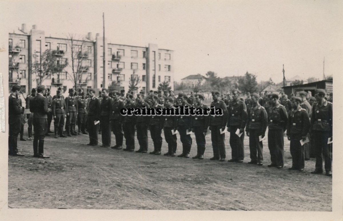 1) Soldaten der III./KG55 am Flugplatz Luck-Nord, Juni 1941 - heute Lutsk / Luzk, Ukraine 2) Soldaten des III./KG55, ua mit US Beute Pkw Mercury, am Flugplatz Samorsk, am Asowsches Meer bei Kertsch, Krim, Sommer 1942 3-4) Soldaten des III./KG55 am Flugplatz Samorsk, am Asowchen Meer bei Kertsch, Krim, Sommer 1942 5) Fischer am Asowsches Meer am Flugplatz Samorsk, bei Kertsch, Krim, Sommer 1942 6) Frau bei Haus am Asowsches Meer am Flugplatz Samorsk, bei Kertsch, Krim, Sommer 1942 7-9) EKII Ordenverleihung an Piloten der III./KG55 in Nowomoskowsk, bei Dnjepropetrowsk, Ukraine, Sommer 1942 10-11) Brückengerät Anhänger bei orthodoxe Kirche in Nowomoskowsk, bei Dnjepropetrowsk, Ukraine, Sommer 1942 12) Bevölkerung bei Quartier der III./KG55 in Nowomoskowsk, bei Dnjepropetrowsk, Ukraine, Sommer 1942 13) Bevölkerung bei Markt in Nowomoskowsk, bei Dnjepropetrowsk, Ukraine, Sommer 1942 14-20) Luftbild des III./KG55 auf der Krim, 1942: zerstörte Hafen Sewastopol 21-23) Luftbild des III./KG55 auf der Krim, 1942: Jalta 24) Luftbild des III./KG55 am Küste in Jewpatoria, Krim, 1942 25) Soldaten des III./KG55 im Quartier am Sanatorium in Saky, Krim, Winter 1942/43 26) Soldaten des III./KG55 bei Geburtstagfeier der "Spiess" Heinz Sabies im Quartier am Sanatorium in Saky, Krim, März 1943 27) Portrait Uffizier Joachim Dietel des III./KG55 im Osten, 1942, später gefallen 28) Arzt Dr. Miller des III./KG55 im Osten, 1942 29) Portrait einer Offizier des IIl./KG55 am Osfront, 1941 30) Portrait (Zeichnung) der Leutnant Hans Sichler, 9. Staffel KG55, gefallen am 16. August 1943 in Dnjepropetrowsk, Ukraine