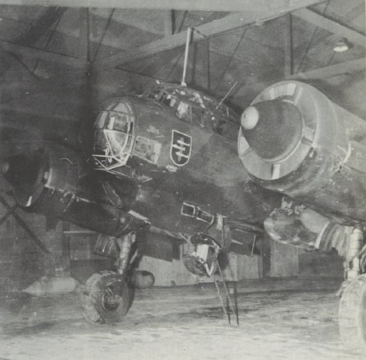 Notgelandeter Junkers Ju88 mit Kennung "F1+FR" der Kampfgeschwader 76 bei Flugplatz Cormeilles-en-Vexin, bei Pontoise nordwestlich Paris, Frankreich, 1940.