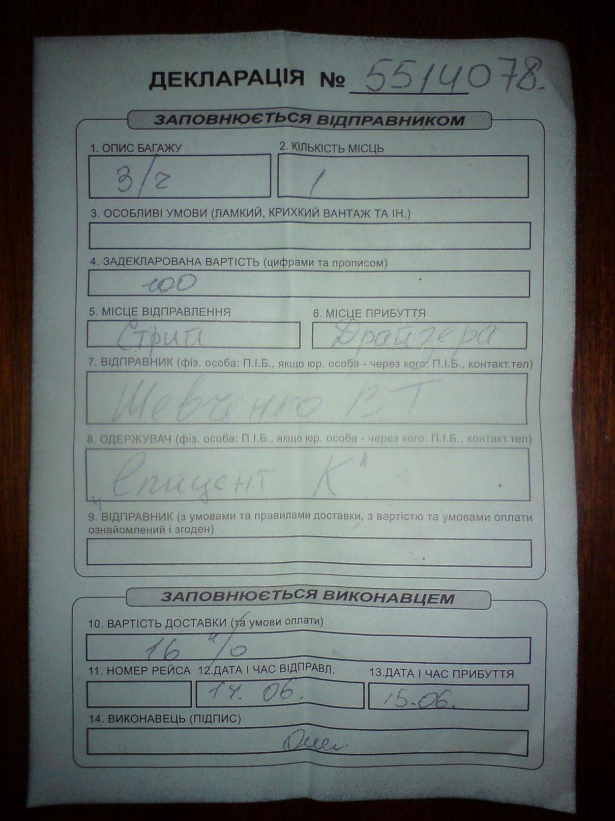 Вот краткая переписка с этим "кидалой", обещанный товар и декларации 30.05.2011 22:00 Slesar: Re: 5435 0630539151 (Вова) запчасти на моську надо 04.06.2011 21:24 Slesar: Re: мося ширина примерно 15 высота 30 04.06.2011 17:22 Slesar: Миллс наконец дошли руки отреставрировать принимай есть пока 4 штука может кому надо на первых фотках миллс побелел от кислоты а то не мог с низу открутить крышку 03.06.2011 22:20 Slesar: Re: 12 у меня рост 1,86 он мне чуть ниже грудей Slesar: Re: ну надумаеш маяч я не против совместного копа даю кординати даже куда поедим в google maps веди там зеленной стрелкой появится (48.839639,23.54044) 02.06.2011 18:01 Slesar: 123 Отправил будет в субботу после обеда Slesar: Re: снаряд я завтра выходной могу миллс забросить если не передумал 12.06.2011 10:37 Slesar: Re: снаряд две бритвы пряга сумка с патриками кокарда пестик с кобурой в кислоту лимонку засунул пусть отмокает вазелин и вроде портсигар но я не уверен !!! 13.06.2011 08:44 Slesar: 234 чо уже не спится я тоже 7.00 уже на ногогах на 8,00 всегда просто на роботу не чо скоро отпуск такое предложения у меня осталось 2 миллса если возьмешь то отдам по 150 грн может товарищу если есть такой ? Сообщения: 4 Последняя неделя 13.06.2011 09:48 Slesar: Re: 234 да сохран хороший две разборные гильзу не привьоз бил в дуругом месте не переживай гильзу я тебе пообещал значит отправлю тебе в бонус пару патрикав дам как на фото у меня таких 400 штук 13.06.2011 10:31 Slesar: Re: 234 Де актив через пулю дырок нет хочеш там себе просверлишь знаю тока шо немец 20мм бронебойный (нм карт 4405 8850 1828 6952) сегодня отправлю ! пуговицы есть пару штук себе держу у меня ети с пушками 13.06.2011 11:22 Slesar: Re: 234 да приват банк без проблем !!! согласен через пулю ето а то поделают себе дирки и не в п**зду не в красную армию 13.06.2011 11:26 Slesar: Re: 234 я отправляю по то муже адресу ???? 13.06.2011 11:34 Slesar: Re: 234 300 да как договорились !!! 13.06.2011 13:57 Slesar: Re: 234 Всьо отправил машина токо завтра будет ехать сам понимаешь праздник вот копия декларации 14.06.2011 19:52 Slesar: Re: 234 привет всьо получил Спасибо фамилия старая я когда то в Чехии бил депортирований и менял фамилию штоб паспорт поменять а карточка на старой фамилии так и осталось а я постоянно забиваю фамилия поминалась.