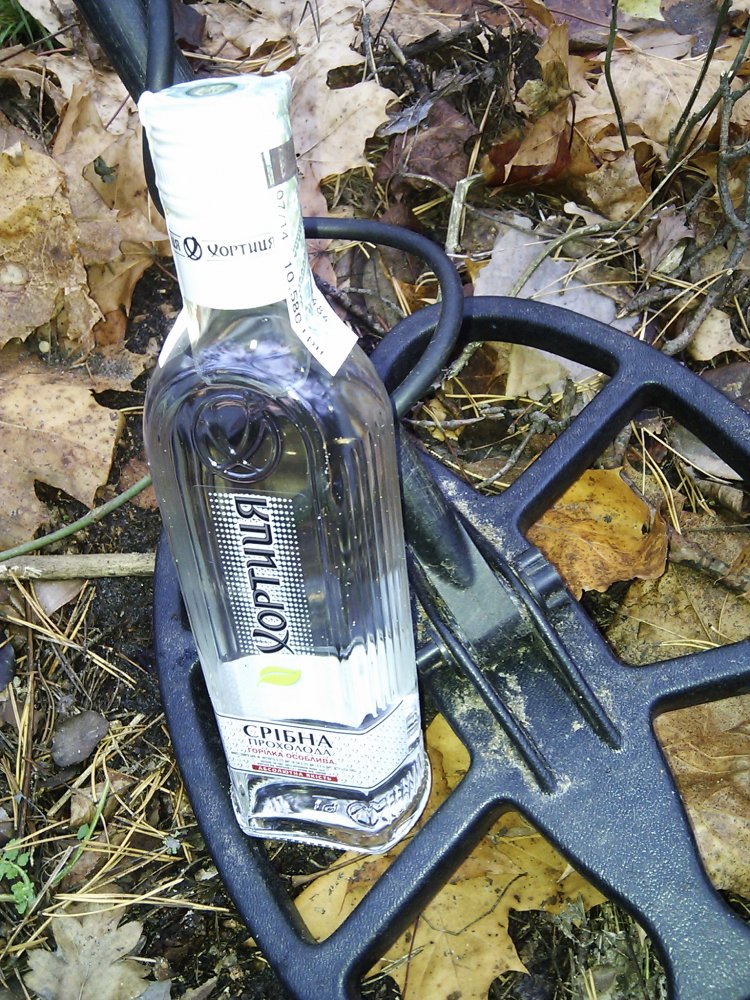 Не шутка.Нашел в Пуще-Водице,причем в таких хащах куда нормальные отдыхающие не заходят.Это кто-то видимо забыл или потерял,а я так как совсем не пью после фотосессии положил на полянке около пенька.Найдет какой-нибудь бродяга-и будет человеку праздник.