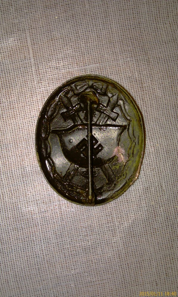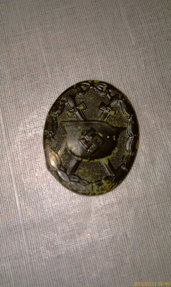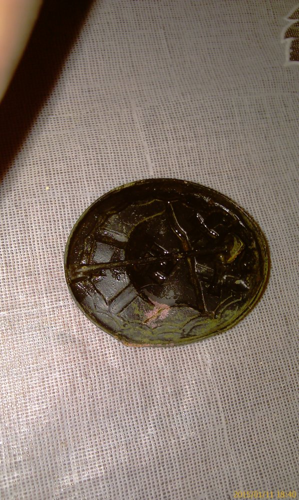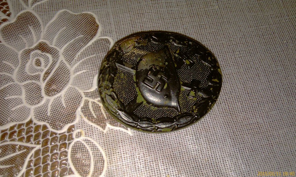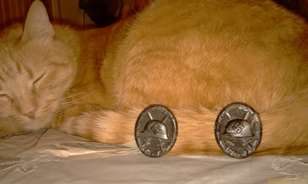 Извиняюсь, что я опять встреваю с "раняхами". До меня дошло, что обе "раняхи" - т. сказ., из коробки, не ношеные, может быть, их несли или везли для вручения раненым. Обе № 107, в одинаковом состоянии, не потертые, обе застёгнутые, без признаков ткани, обе найдены в пределах 50-70 м друг от друга. По ходу, надо еще искать. Вот такие, на котэ