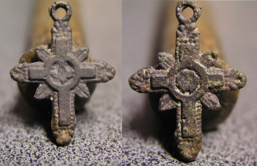 крест католический, 19 век.изображен Святой Дух в образе голубя на одной стороне и сердца Марии и Иисуса на другой , по стране ,пишут польский . Нашел такой недавно на юге ,значит - была популярная модель.