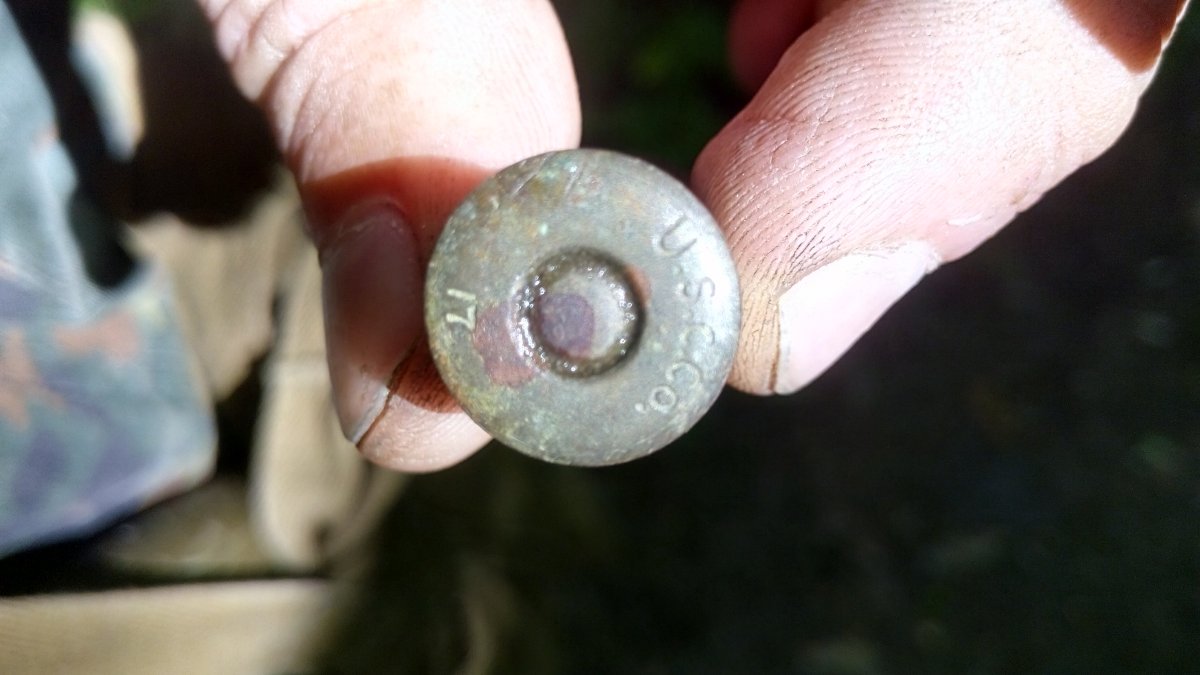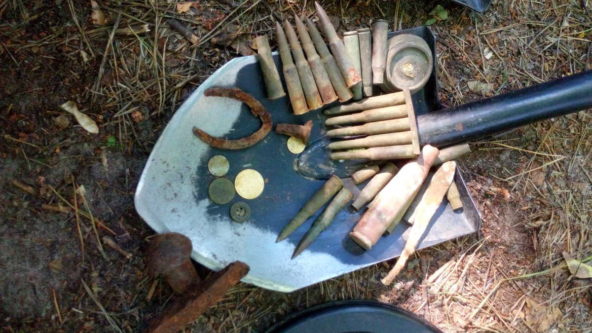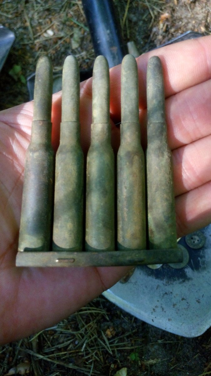 эк .... обнадежил меня заповедник .. обдолбал весь ... находки рядовые ---- 1 4 ганс колотухи -- в сборе--одну востановил ммг, 2 эмэшная заряжалка... в хлам. 3 ..37 мм ганс боеприпас в сборе , но гильза .. дно ее стальное ... 4....17 арт гильз 150 мм ... одна латунная .. с клеймами и номерами ... клевая ... 4 .. гильза 45 мм .. и 5 свыше 1000 настрел от гочкиса вроде , но обойм не было ... либелей и в пачках и так нарыл + мосинки с мельхором .. трохи нарыл и на закуску коробка с мосинскими маслятами ... мертвые .. чуток открыта .. под сухолучьем и ганс патронтаж в коже и все ....