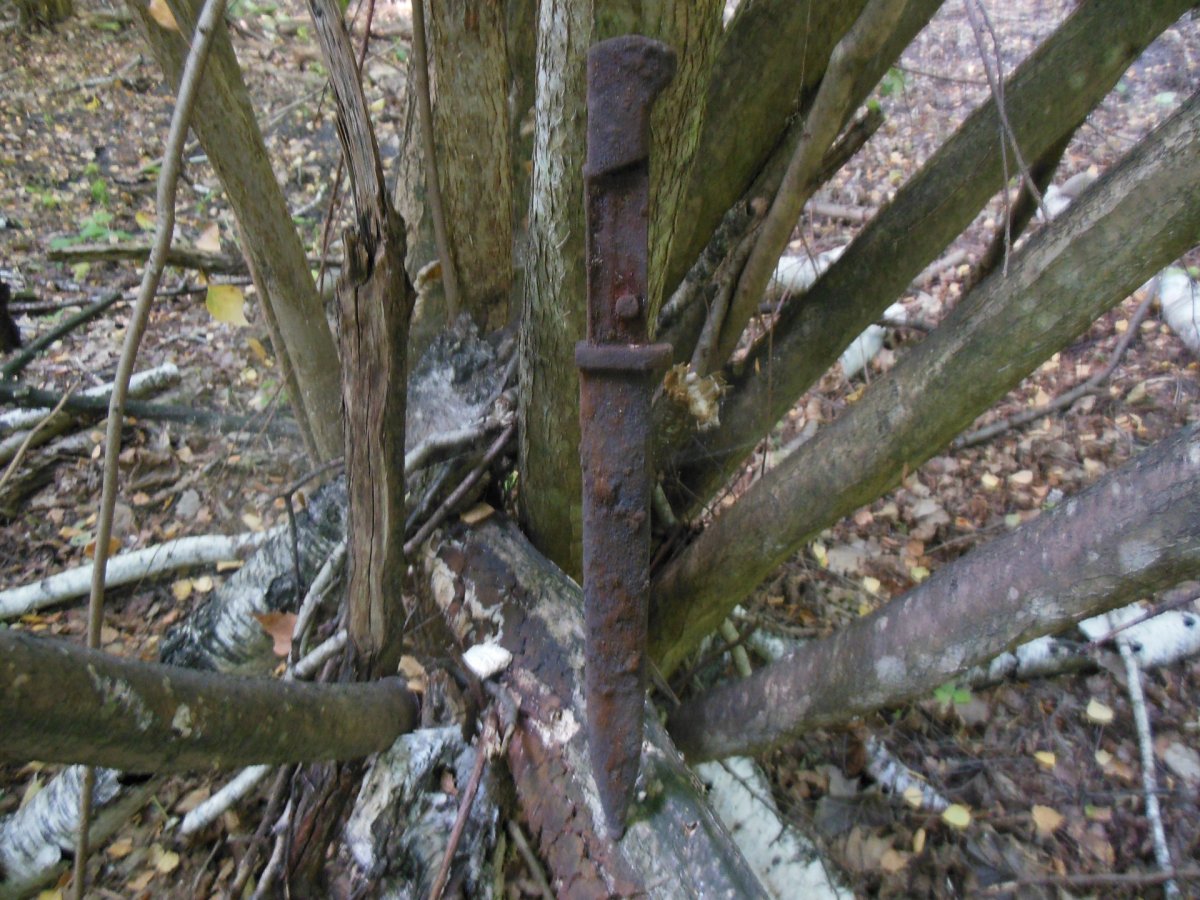 Кстати там была автомобильная полуось и поршни от мотоцикла,я так понял там стояли трофейщики.Нашел весной в том месте дерево где ганс рожу брил,под деревом безопасная бритва,зеркальце и рыжая обручалка.