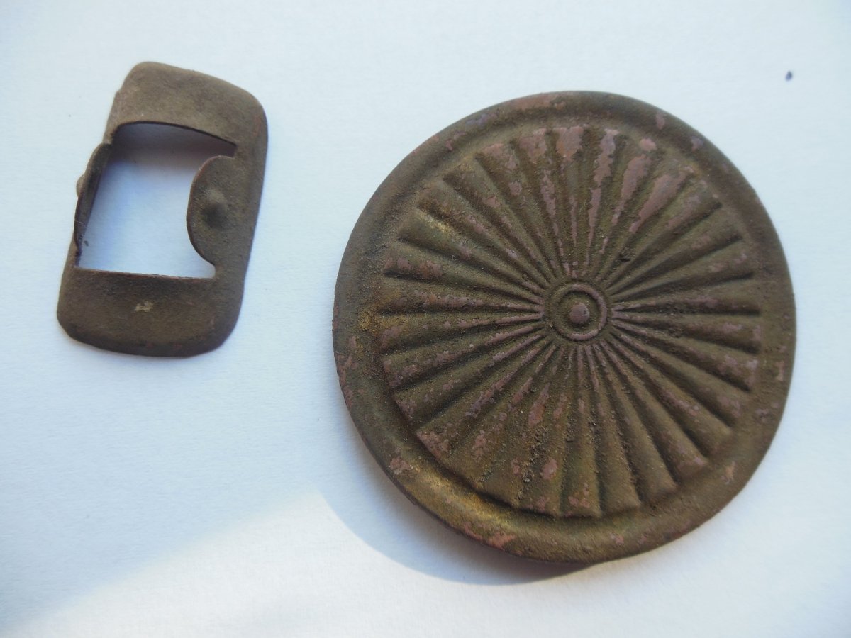 Ходил сегодня в тех же местах.Коп был слабенький..В конечном итоге вынесло меня на ту полянку где был зверски искусан Рома.) Побродил часика два между телами безвинно убиенных Ромой безобидных и кротких комах .Накопал десятка два монеток и два значка. Из монеток - интересны 2 сантима 1922 года,остальные советы дореформа и поздние.. По значку кстати , вопрос - может кто опознает ,что это было? (значок из тяжёлого металла )