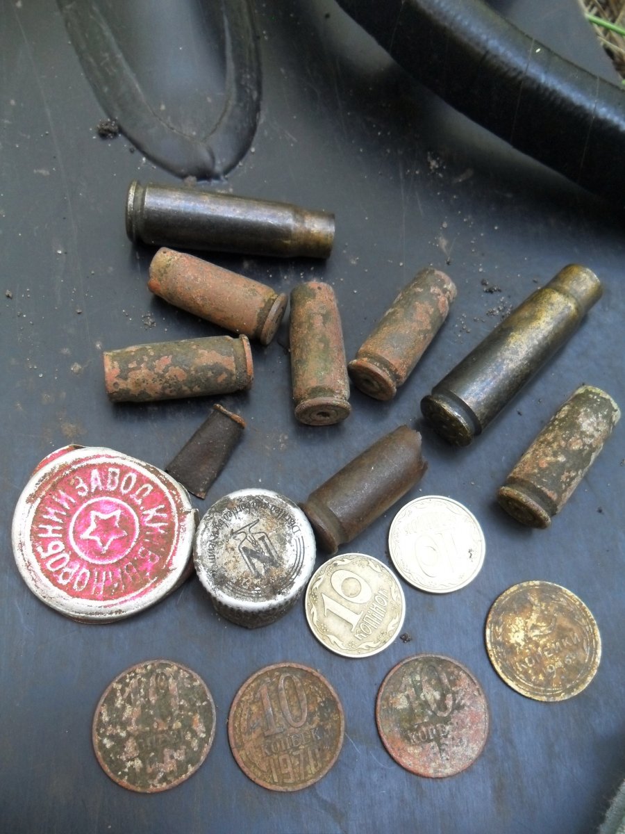 Пробежался по новым местам. Ох и жарища. Реально через час был мокрый. Нашел разбитое в войну село. Раза три переходило из рук в руки. Нормальненько так... перспективное местечко. И не копано ж, вот что главное! Много приятных вещей) Спадет жара займусь в плотную.