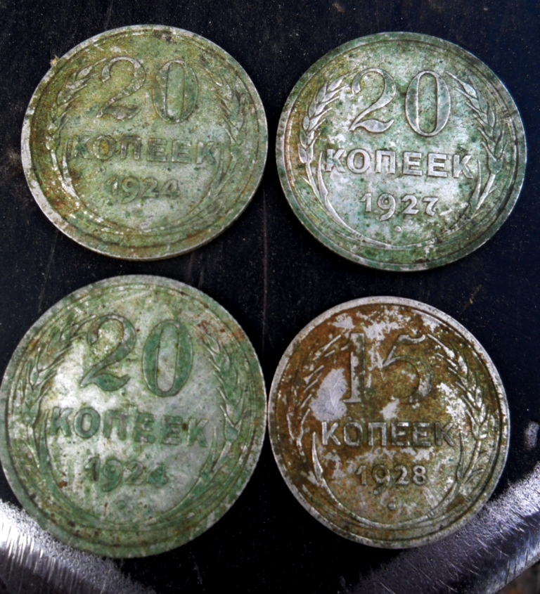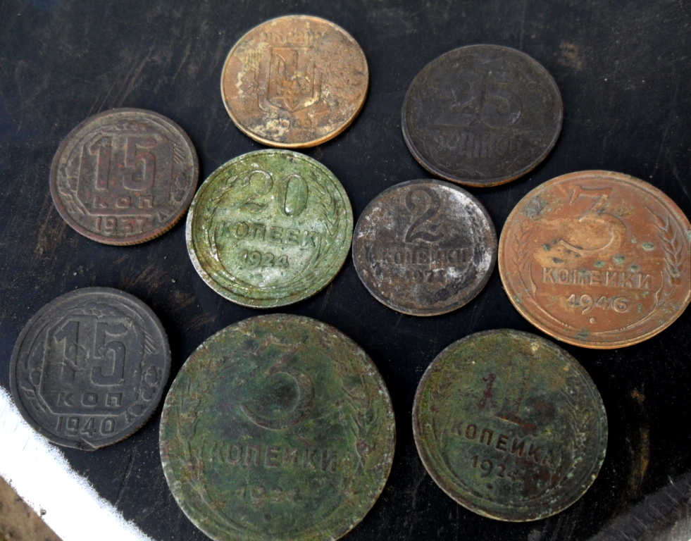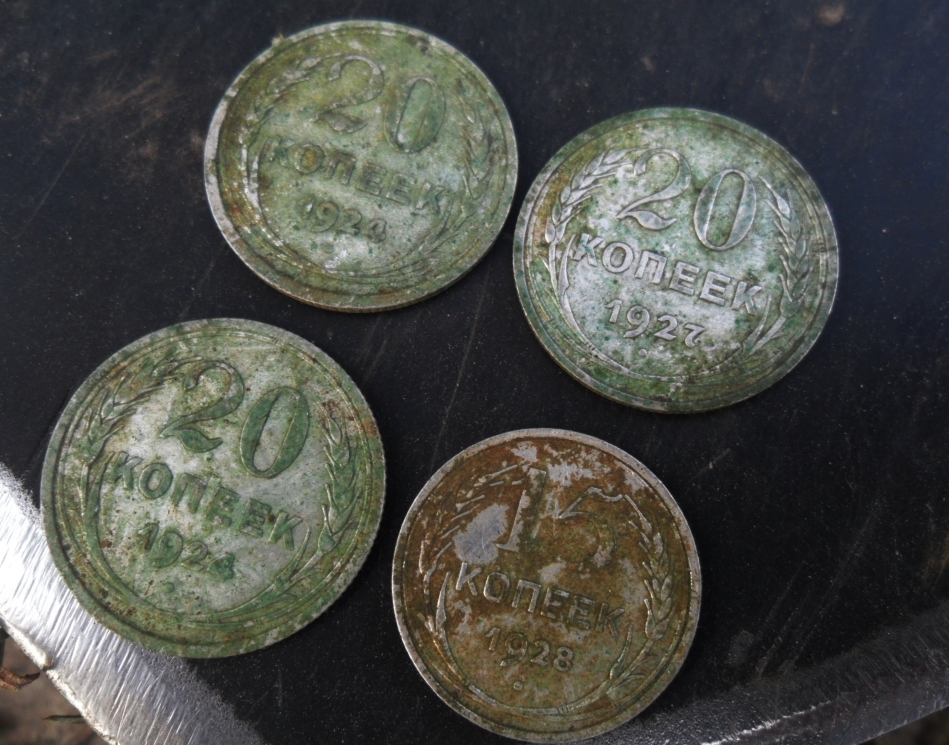 Всем привет! Сегодня днем пробежались по лесу. Приятной неожиданностью стали биллончики и ранние советы, выкопанные практически в одном квадратном метре. И сигналы закончились. Но после легкого шурфа, в этой же точке, вылезло и еще несколько монет. Попили пивка, отведали горячей мивинки с шашлычком и домашними помидорчиками ). Накопали немерено шмурдяка, замучались вхлам, вообщем все как обычно ). Вот так и прошел еще один чудесный копательский день )