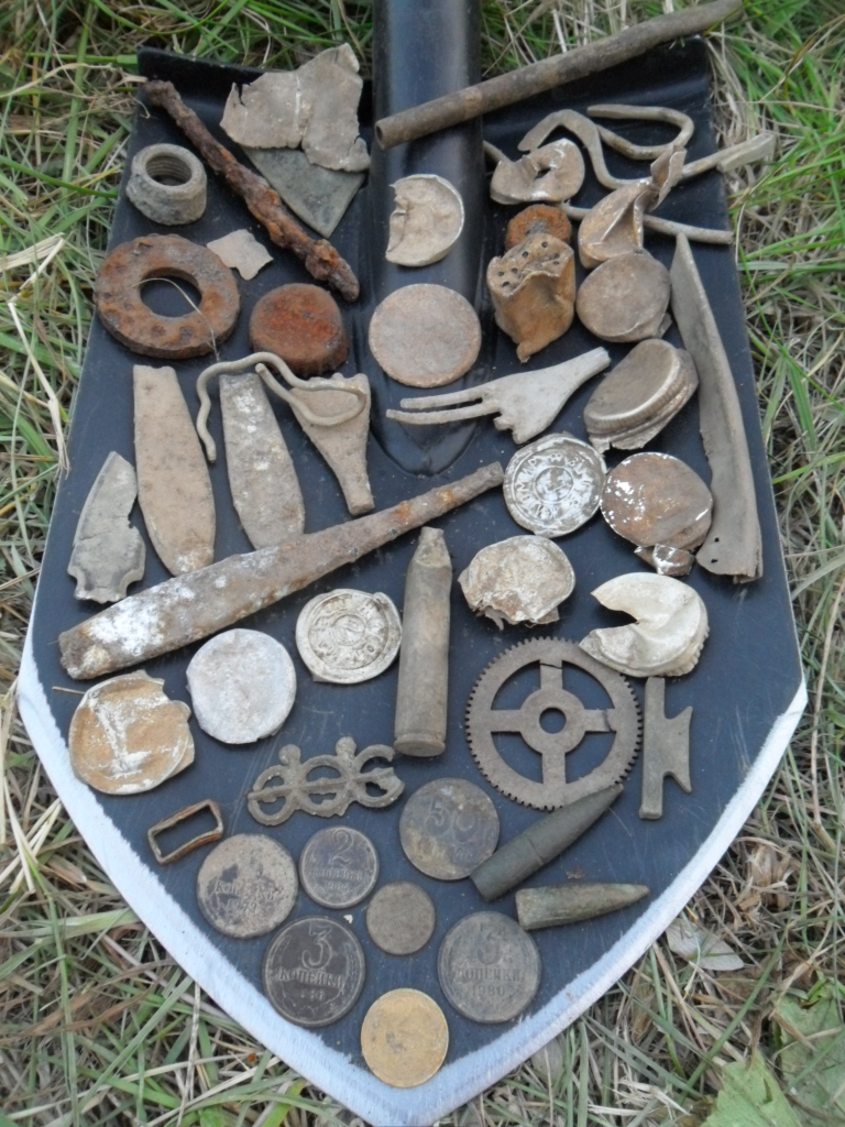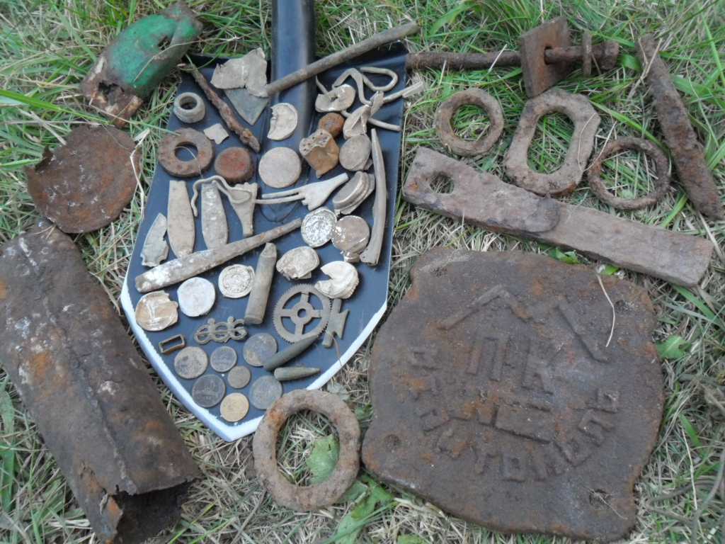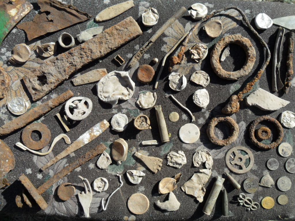 Мелочь и украшения разные. С 20-х годов прошлого века еще. Народ бухал, народ терял... И стандартный набор военного шмурдяка, само собой. Чего-то замечательного не нашел.