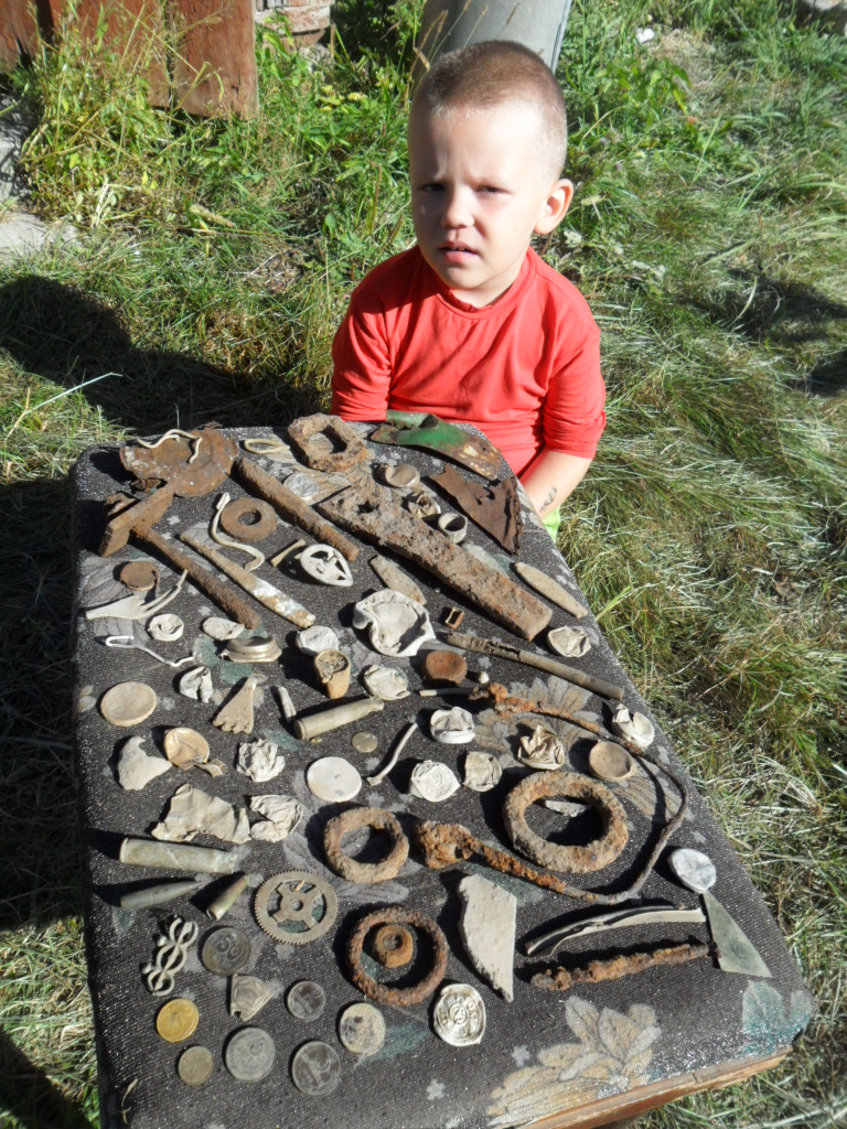 Всем добрый вечер. Отдыхали два дня семьями в поселке Першотравневое, Малинского района Житомирской области. В планах было убежать от городской суеты в село на природу, свежий воздух, отдохнуть душой и телом ). И покушать вчерком водочки с шашлычком, в спокойной дружной обстановке ). Прибор естественно в багажник тоже был загружен, как продолжение руки ). Перечитав историю данного поселка, изначально было понятно, что на царскую медь тут можно было не расчитывать, разве что на ранние советы ). А по близлежайшим более старым селам не катались, были привязаны к детям и до этого так дело и не дошло. В селе отдыхать было прикольно, натопили грубу, кушали борщ, ездили в лес на прогулку, но грибов не было. Сухо ). Вечерком катались за самогонкой в соседнее село ). Прошвырнулся по лесной тропинке с прибором, но по находкам печалька, гильзы, пули, ото и все. Сбили стремянку, полазили по чердаку, пусто. С утречка пробежался по хазяйскому небольшому огороду ). Картошки накопал больше чем находок ). Хлама, естественно немерено. Включил броню и копал все сигналы ). Полностью очистил участок от всего накопленного за все годы шмурдяка ). День прожит не зря ). Под яблонькой из одной ямки вылезли две копейки 1938 года, нарезная пуля и значек ВЛКСМ, это и было самым ценным "кладом" за весь коп ). Вот так и прошли еще два прекрасных дня. Теперь сижу дома и снова тоскую, классно было, и снова хочется поехать куда-нибудь еще, подальше от цивилизации. Там где будешь только ты, друзья, красивая природа, и прибор ). Всем камрадам от души желаю добра, позитива и хорошего настроения!