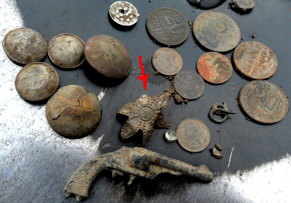 Вчера дружбан интереснтую звездочку при мне копнул, из нее какие-то камни повываливались Тоже интерестно было бы узнать, шо воно такэ. Фотка правда не ахти, сопутка кованые гвозди