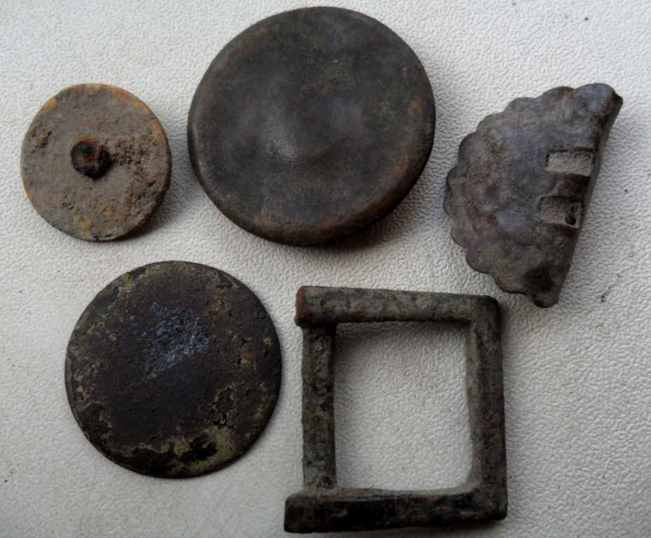 И я сегодня с утречка пробежался по лесочку. Выскочила запанка с надписью "Tigrann Kleff", хотел перевести этот текст в интеренете, так и не получилось. И какая-то малюсенькая штучка с клеймом "SR" и звездочкой сверху. Что за хня, может кто знает? Немного повевеслила царская пуга и самодельное колечко. Вот впринципе и все. Всем камрадам добра и хорошего настроения!