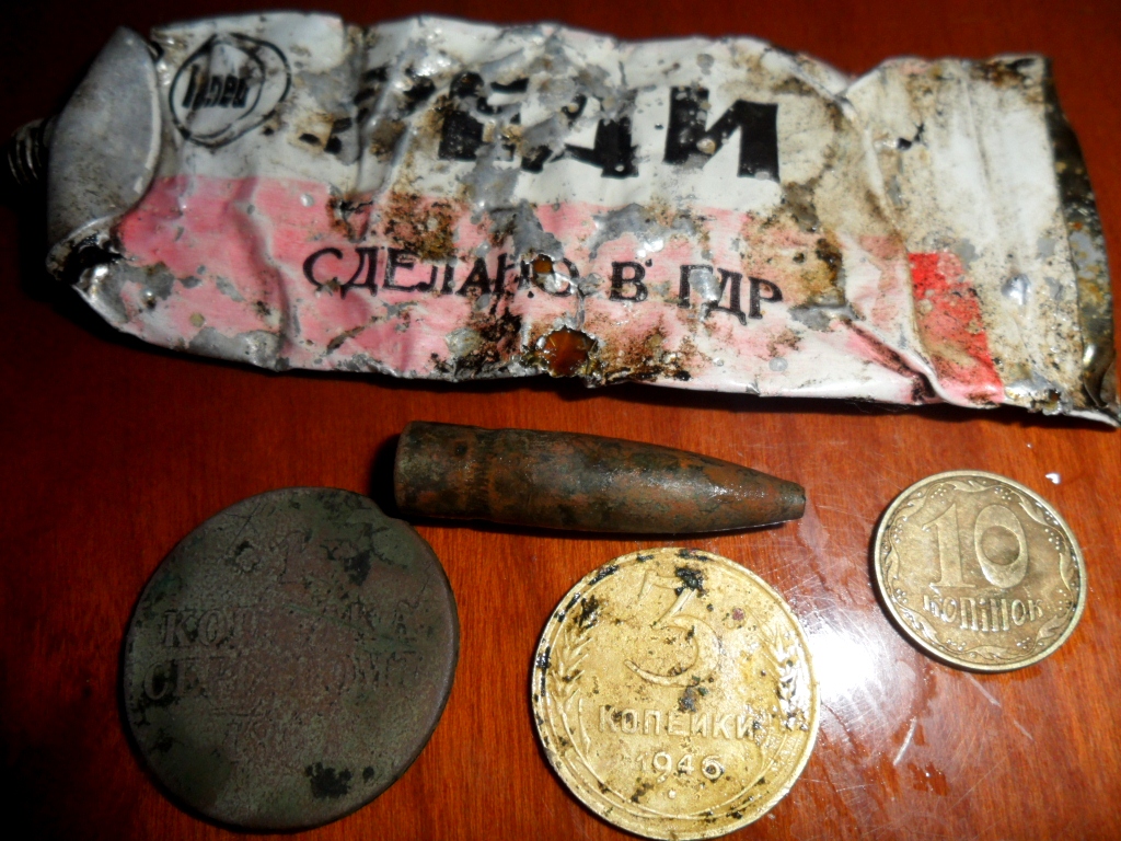 Сегодня днем прогулялись в поле, чтобы дома не биться головой об стенку ). Накопались от души консервных банок и прочей романтики ). У меня вылезла 1 копейка серебром убитая в лысую какаелину ), и очень"редкие" 3 копачки 1946 года ). И все. Но, скажу честно, приятнее рыть пробки в приятном общении с камрадами, чем дома в одиночестве от скуки пролежни зарабатывать ). Всем ни хвоста, ни чешуи и побольше глэчиков с червонцами! )